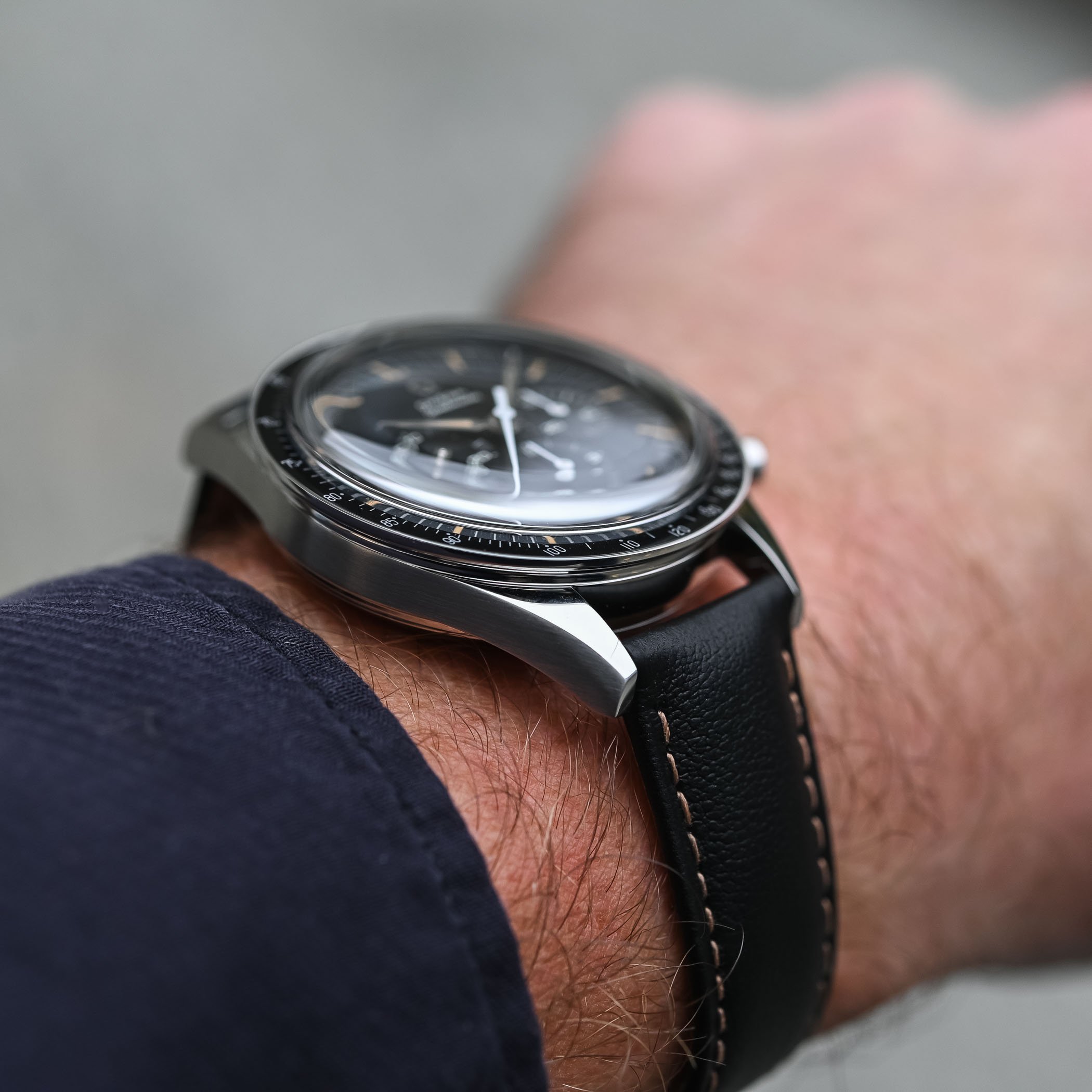 Acrylic crystal, also known by brand names like Plexiglass, Perspex, or PMMA (polymethyl methacrylate), as well as Hesalite (a common name in watchmaking), is a transparent, synthetic polymer. Unlike mineral glass or sapphire, it is a lightweight plastic moulded to fit the shape of the watch case. Acrylic is light, shatter-resistant, and surprisingly flexible. In an era before sapphire, it was the go-to material for nearly all watches. It’s particularly common in vintage-style pieces or tool watches, which value toughness. Acrylic’s resilience to shattering made it ideal for watches that would be used in harsh environments, like military or dive watches – and in space too, as it was the material of choice for the Omega Speedmaster, which became the Moonwatch – the non-shattering properties were crucial in zero-gravity environments.