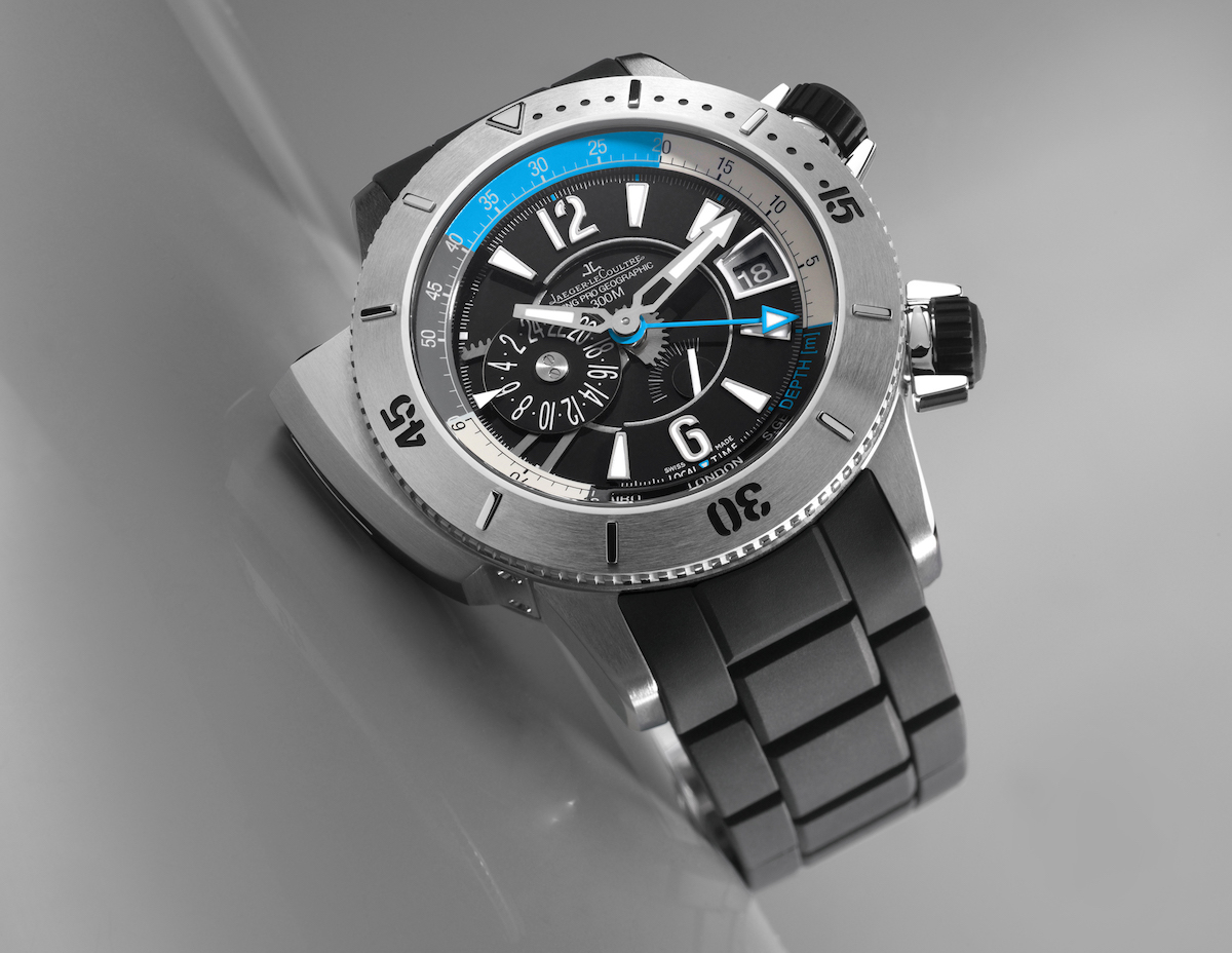 Below: Jaeger-Lecoultre Master Compressor Diving Pro Geographic Navy Seals features a mechanical depth gauge. In the compression compartment on the side of the case, a steel membrane contracts or expands as water pressure varies.