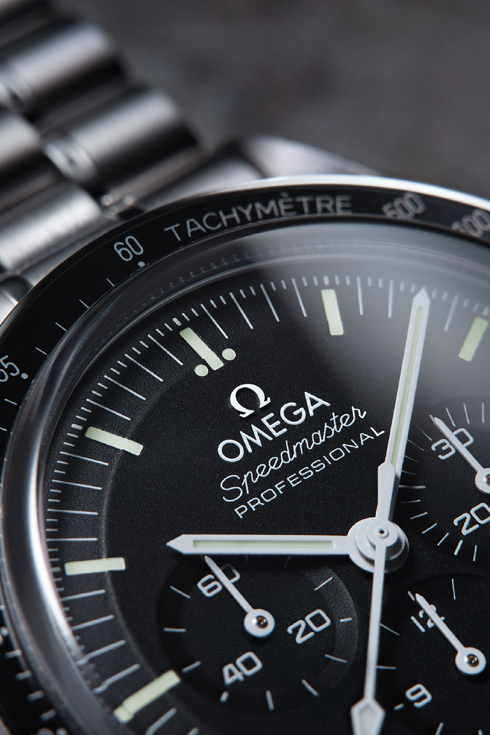 Finally, the last important update to be seen on the Speedmaster Moonwatch Professional occurred in late 1997, when Swiss authorities prevented the use of radioactive material for the hands and markers, Omega replacing it with Super-LumiNova – watches with this material are easy to spot, thanks to the no-T dial and the pure white colour of hands and markers.