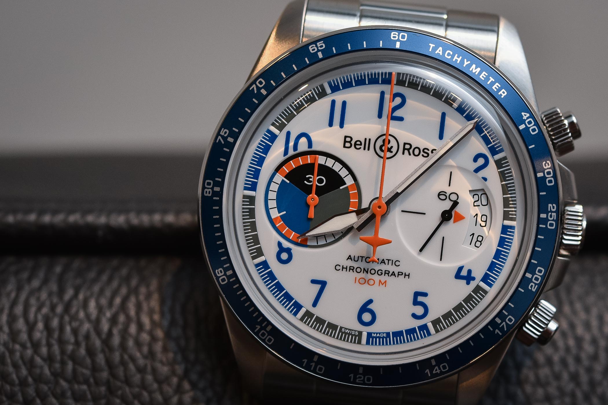Inspired by an aeroplane, the BRV2-94 Racing Bird soars with colour and a 1970s racing chrono vibe.