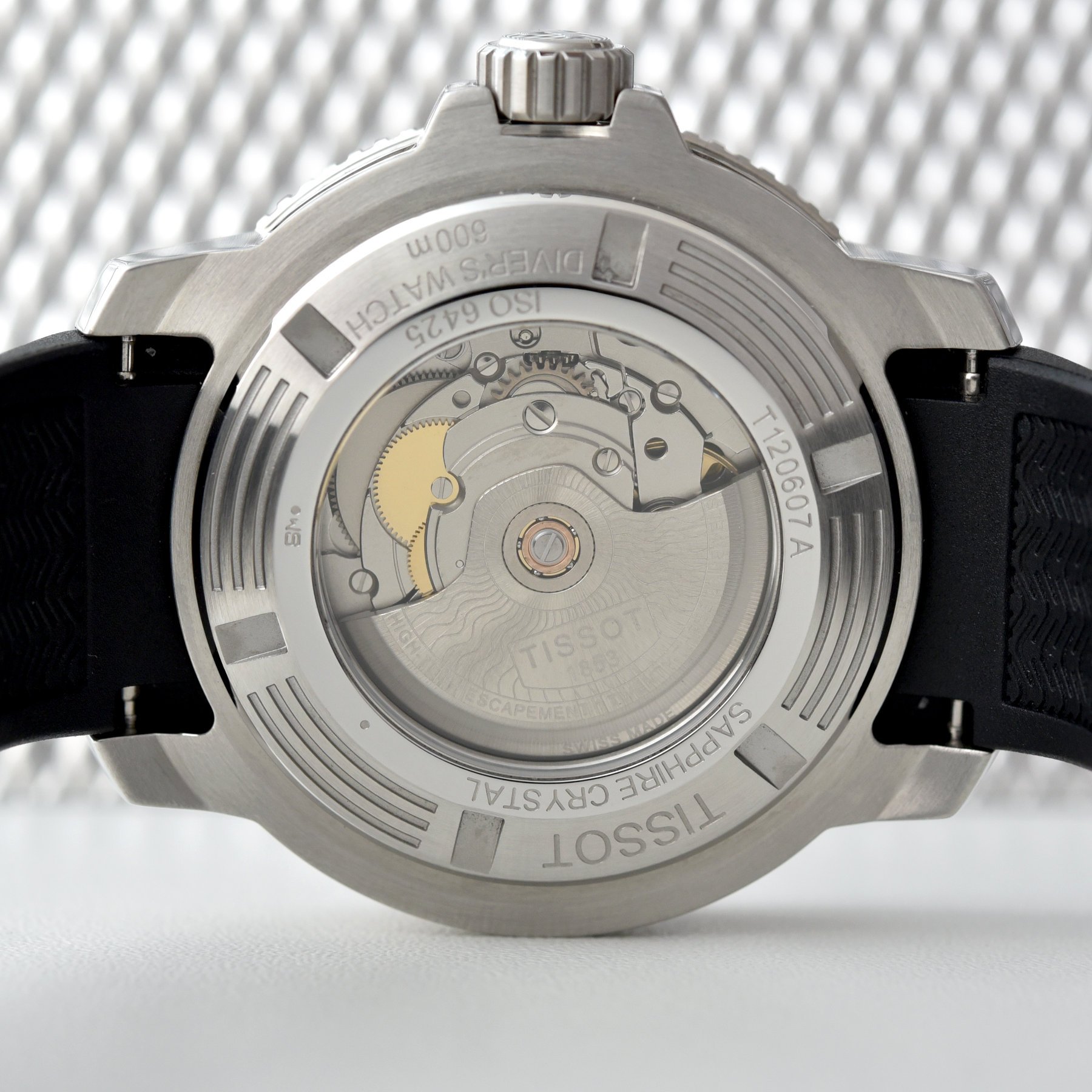On the other end of the price spectrum, we find the Tissot Seastar 2000 Professional, which perfectly represents Tissot’s excellent value-for-money capabilities. We’re talking about a robust diver that can go to depths of 2,000 meters with ease. Its steel case is either brushed and polished, or coated in black PVD for a more stealthy look. The unidirectional rotating bezel has a ceramic insert and a domed and bevelled sapphire crystal. The gradient dials, black or blue, has a wave-like pattern to give them even more life. The large hands and indices have a very generous coating of Super-LumiNova. Power comes from Tissot’s Powermatic 80 Calibre, with 80 hours of autonomy and an anti-magnetic Nivachron balance-spring. It’s worn on a black rubber strap or bi-material black rubber and blue textile strap, depending on the reference. The Tissot Seastar 2000 Professional retails for EUR 995 in steel and EUR 1,095 in black PVD coated steel.