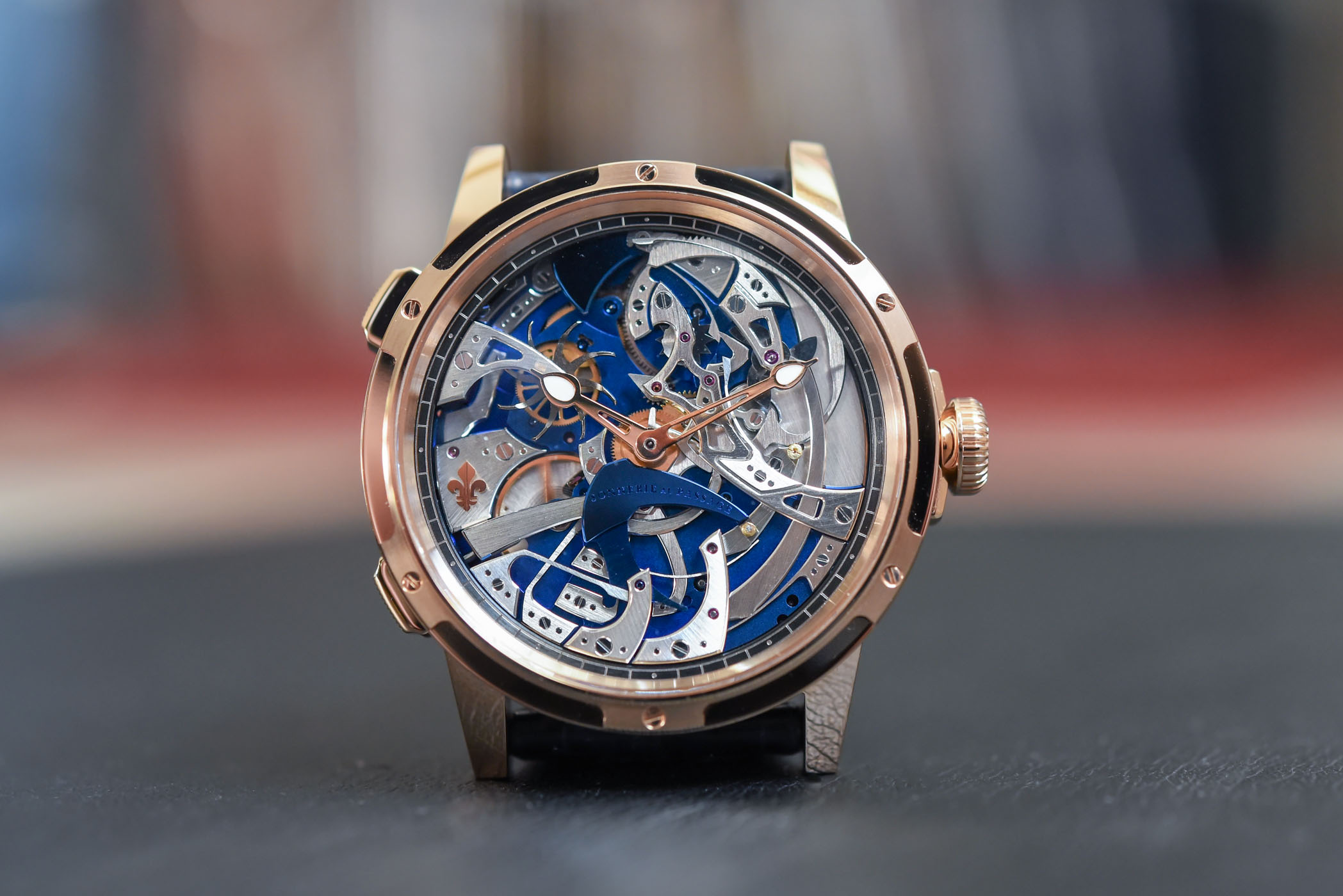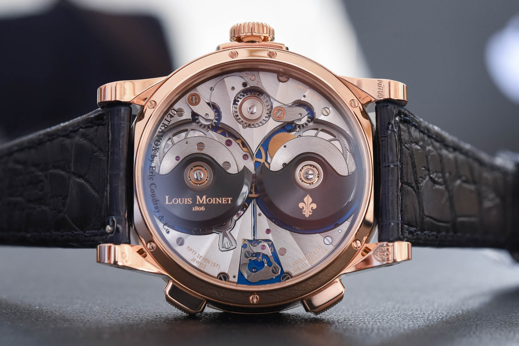Quick facts: 46.5mm x 14.5mm pink gold case – water-resistant to 50m – automatic calibre with hours, minutes and hour strike au passage – alligator strap with folding buckle – CHF 130.000 – limited edition of 28 pieces – for more information, visit www.louismoinet.com.