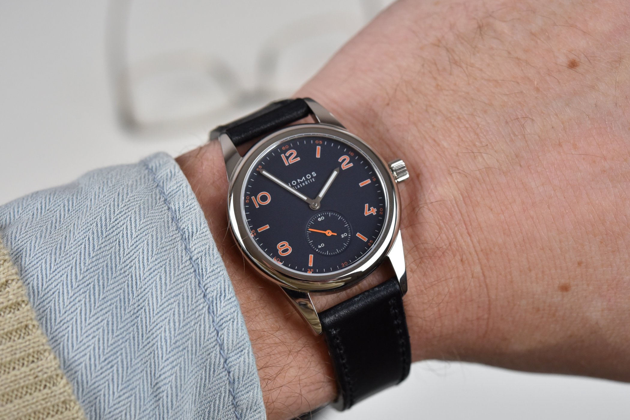 Quick Facts – 36mm x 8.2mm – stainless steel case, polished – elongated lugs – closed or see-through caseback – 100m water-resistance – deep blue dial – orange numerals and indices – rhodium-plated hands with white Super-LumiNova – orange seconds hand – NOMOS Alpha Calibre, in-house – hand-wound – 21,600vph – 42h power reserve – Horween Shell Cordovan leather strap, additional blue and orange NATO straps – limited edition of 150 pieces (50 closed, 100 open caseback) – EUR 1,080 to EUR 1,340