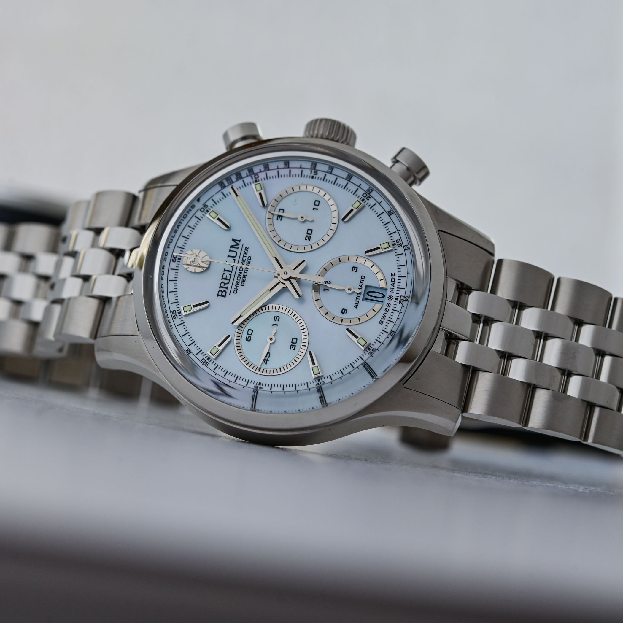 The Brellum Duobox 39 Ice Blue Mother-of-Pearl Chronometer