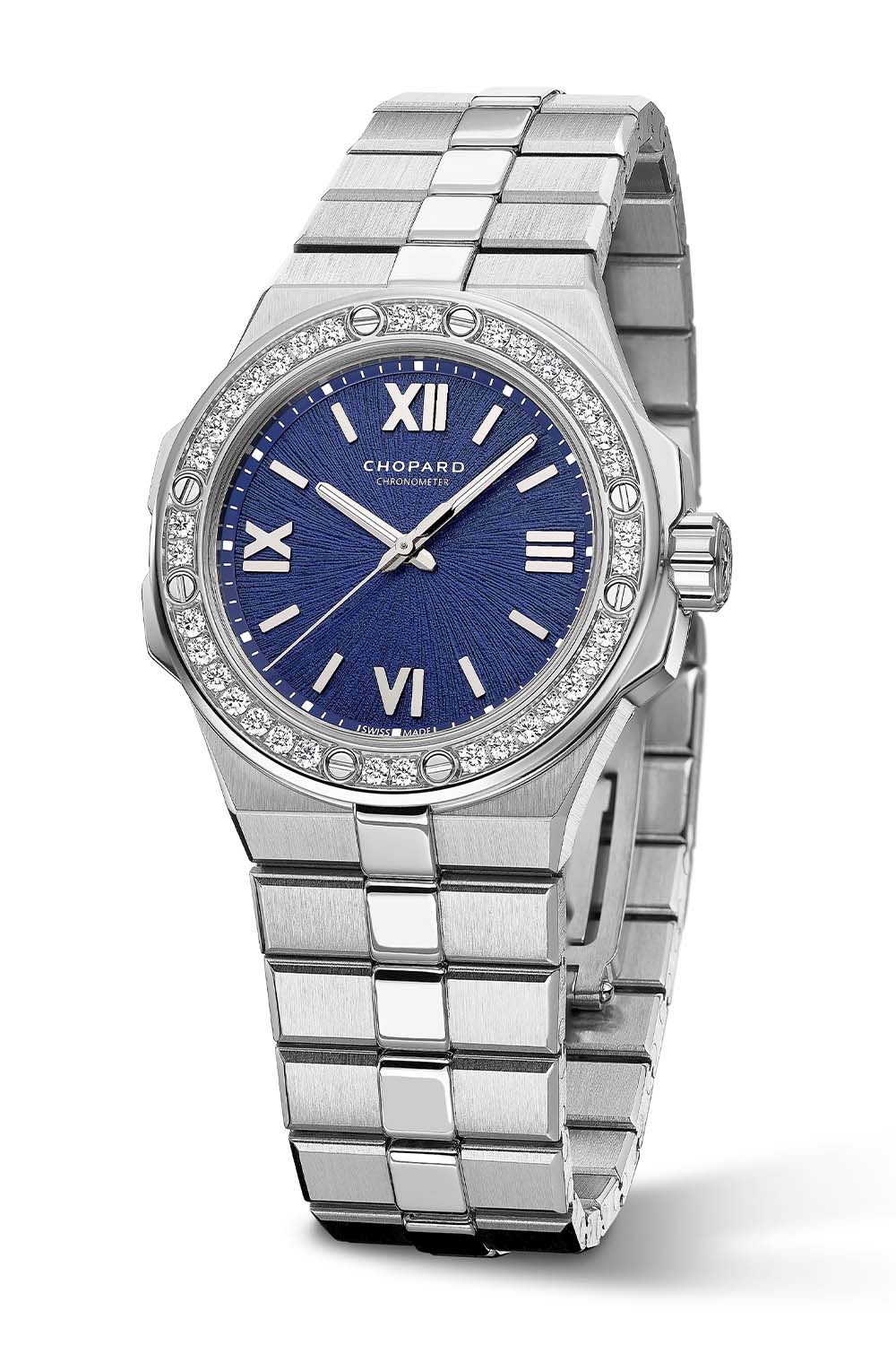 - Ref. 298617-3002 Lucent Steel with Aletsch blue dial and diamond-set bezel, EUR 13,500