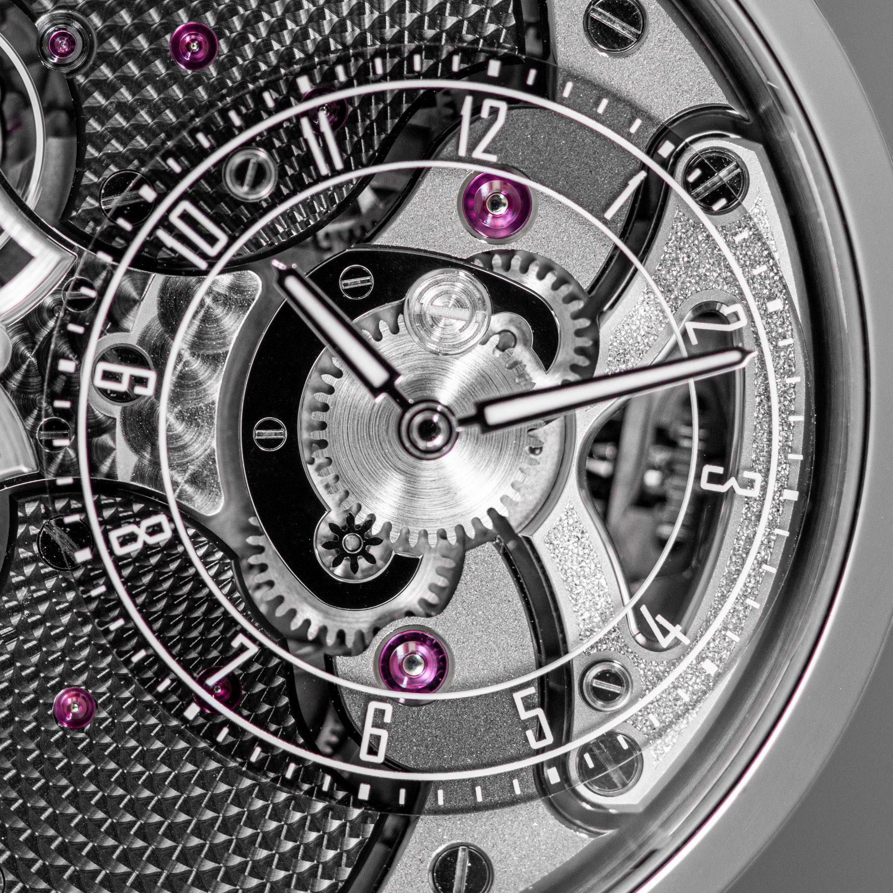 Resonance is a fascinating natural phenomenon. To apply it in watchmaking chronometry is like a dream come true for me personally wearing it on my wrist. I am very happy with the result as it looks even better than the design rendering, especially in person. I like how the depth on the dial side and the resonance in motion really provide a great visual effect. It’s a monochromatic, highly technical timepiece with an extreme level of hand-made haute horlogerie decorations. When it comes to the hand-made decorations on the Pure Resonance Ultimate Sapphire, Armin Strom created a unique combination. Also, the new movement design and decorations are a highlight of this watch. Lastly, having Horomariobro engraving on the movement side adds that extra special feeling to me personally.