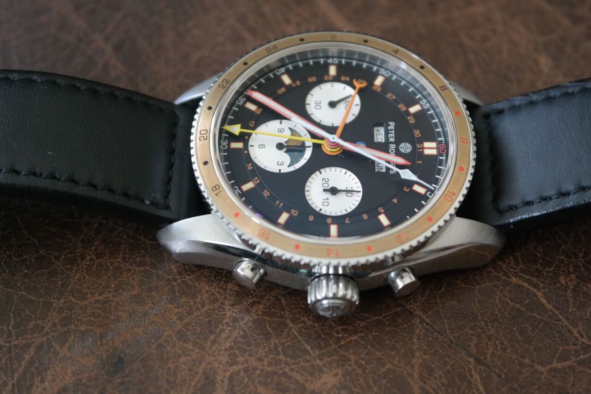 Peter spoke to his lecturer who said the watch was merely theoretical and had never been produced. It was this comment which spurred on Peter and led to him creating his 5-hand timepiece. The original featured a Valjoux 726 together with some Rolex components and Peter continues to wear this watch to this day. I would love to own this very watch.
