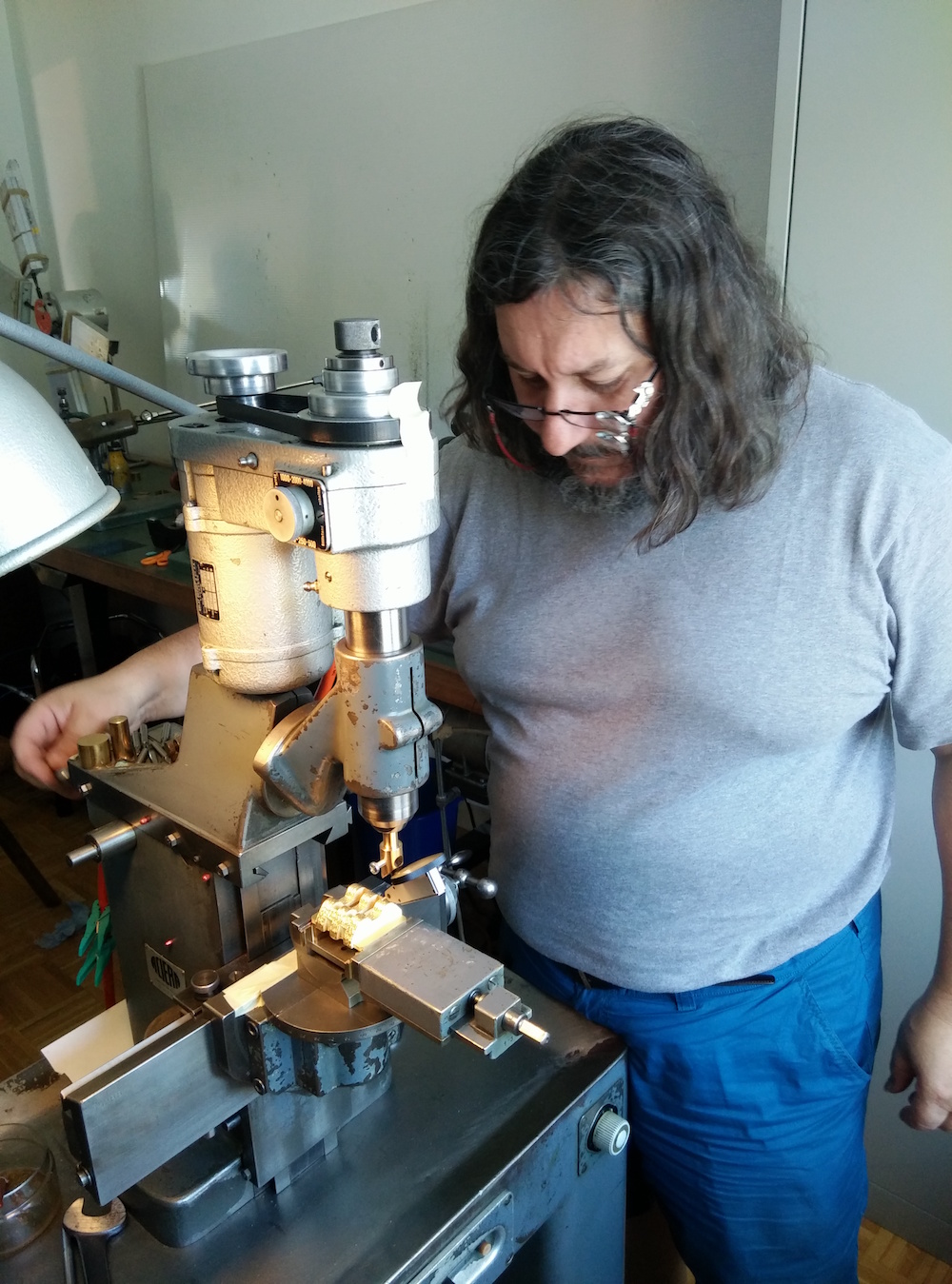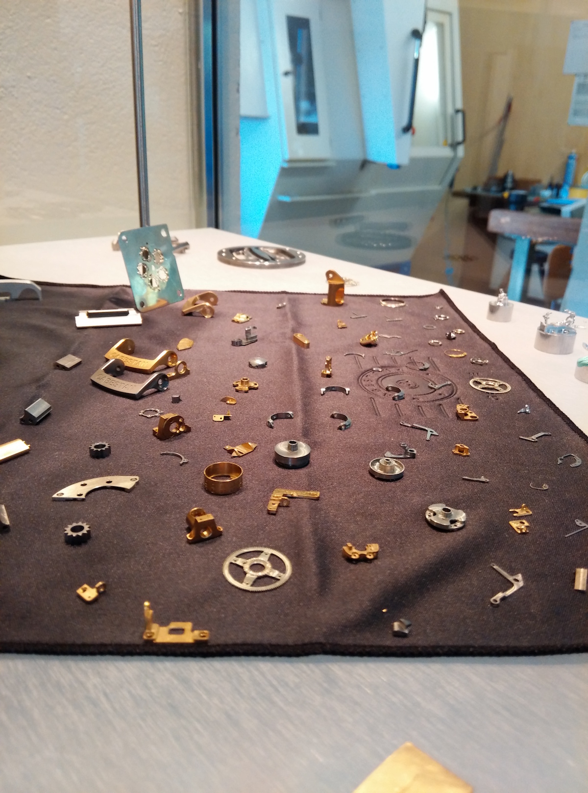 Imagine a watch of over a thousand parts some smaller than a human hair; a vertical tourbillon; a fusee-and-chain constant force power train; a small sphere of solid gold representing the moon in 3D – interacting with a series of minute gears and levers manipulating gold rollers that tell time in jump hours, minutes and seconds. Now imagine that each of these 1000-plus parts is milled and hand-finished in-house – even the case is cut from a block of gold via their own CNC machine – and that each watch is made by a single watchmaker from start to finish. (only the sapphire, some screws, springs and strap is outsourced). At the manufacture, I literally saw bales of raw maillechort tubes getting sliced while a hardworking CNC and electrospark machines were cutting these slices into German silver baseplates. Imagine a Lange facility just much messier and then some – it’s like Yoda’s messy cave: everything you need to be a good Jedi but nowhere as pretty as Palpatine’s digs in the Capital.