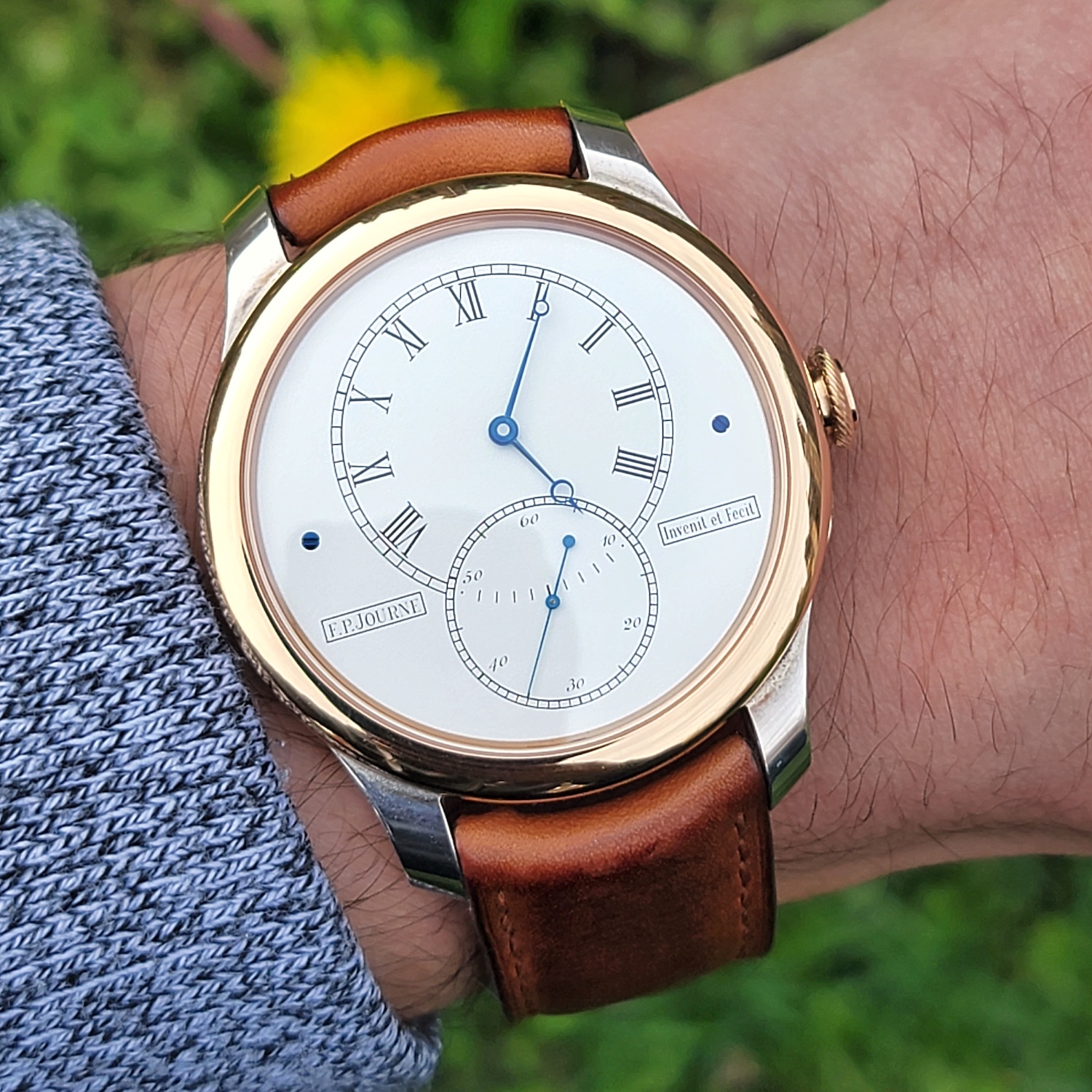 Personally, I try to not put a value on any of my watches. The fun part is in the watch itself and once it becomes an asset, it is no longer the same thing that attracted me to it in the first place. That said, I am unsure of the market value these days, since the T-30 is rare and the Journe market is still somewhat unsettled and surprising. I acquired it in 2019 so the price has definitely changed since then. I hope I never have to sell the watch because I truly love it and I hope it will bring me joy for many years to come, or at least until the case develops a beautiful silver patina!