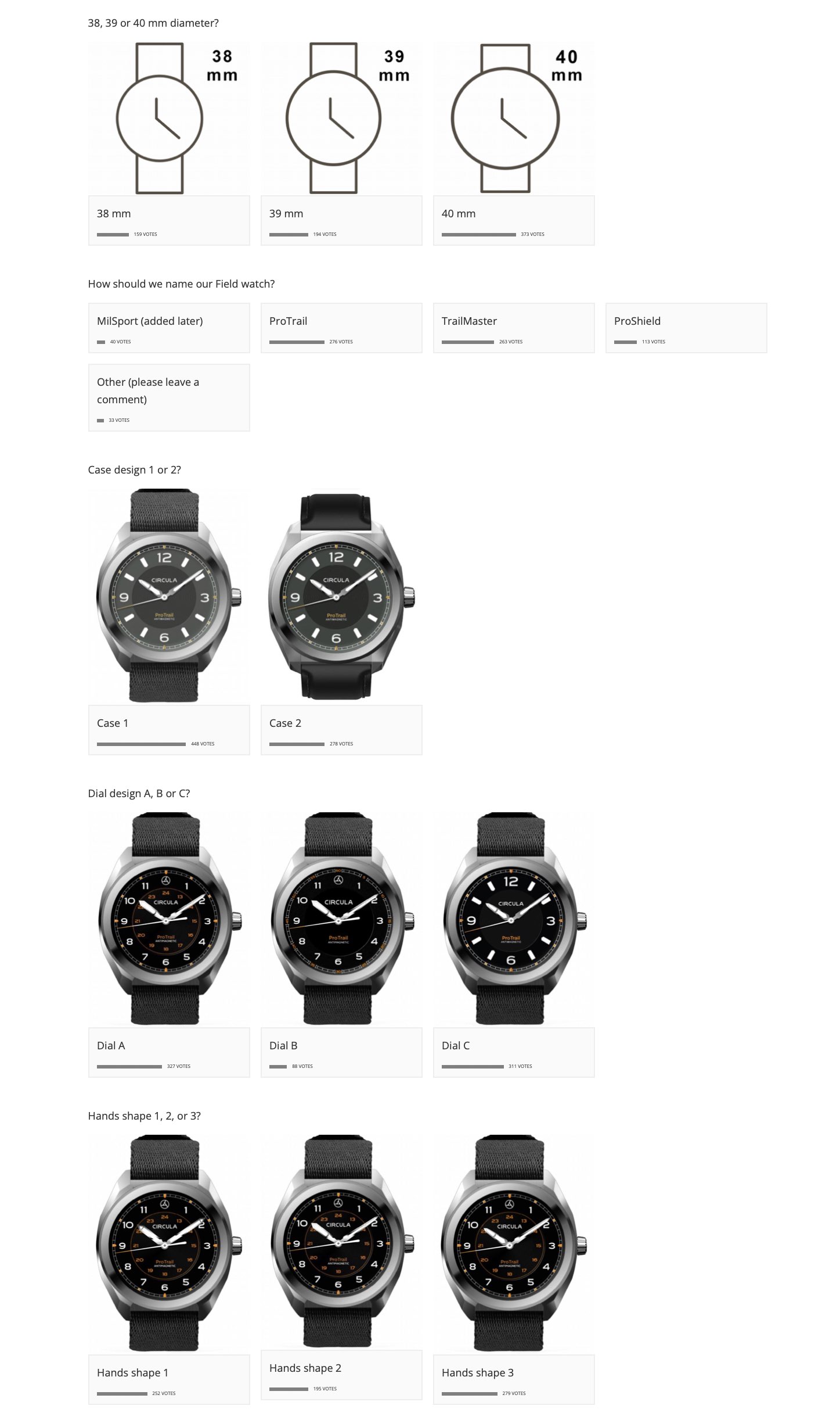 Back in February, we informed you that Circula was working on a new field watch to be added to the brand’s portfolio of tool watches. Through a dedicated co-creation page, you could vote for things like the name of the collection, but also the size and shape of the case, the design of the dial and hands, an array of different colour combinations and two types of logos. With just over 6,500 votes in total, this campaign should be regarded as a big success for such a small company. And the beauty of it all is that the ProTrail Automatic is now ready to go!