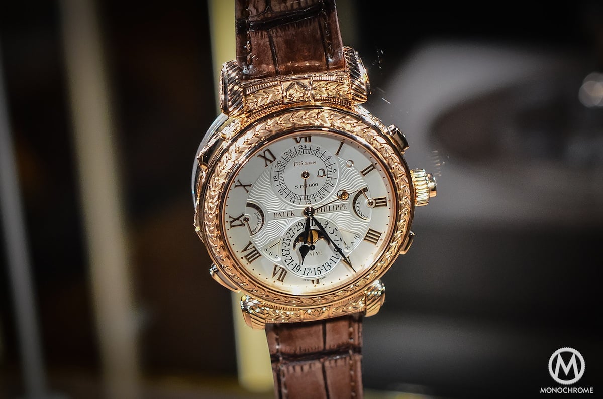 A grand complication is a watch with multiple, complex complications, but three specific ones are generally recognised as a standard (although not a hard requirement) – chronograph, minute repeater and perpetual calendar. The first grand complication was commissioned in 1783 for Queen Marie Antoinette, but wasn’t finished until 1827 (long after her death). Produced by Breguet and known simply as No. 160, it featured a staggering 23 complications with 827 parts, and included a minute repeater, perpetual calendar, power reserve indicator, equation of time, chronograph, thermometer, and was even self-winding (perpétuelle). Patek Philippe’s “Palmer” pocket watch from 1898 had only 13 complications, including a minute repeater, grand and petit sonnerie, perpetual calendar, split-seconds chronograph and moon phase. It was the elite watchmaker’s first grand complication and ultimately led to a piece on this top 5 list.