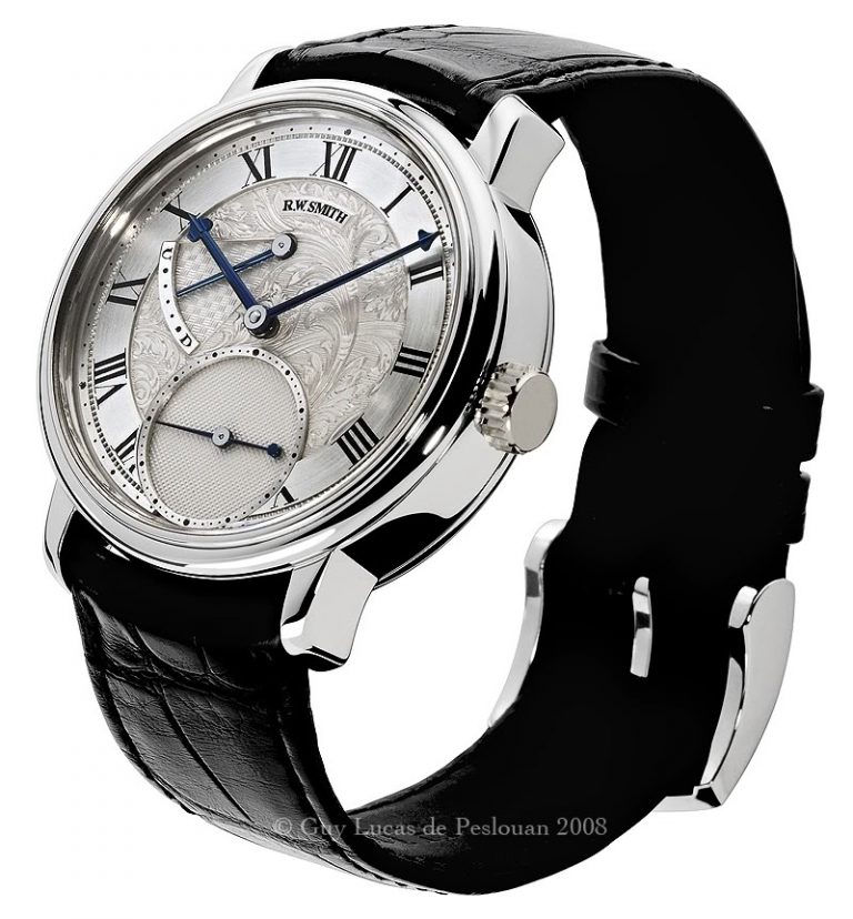 - Strap & buckle: the GREAT Britain watch comes on an alligator leather strap, with a buckle that is also fabricated by hand from platinum and hand engraved with the maker’s name (R.W. Smith).