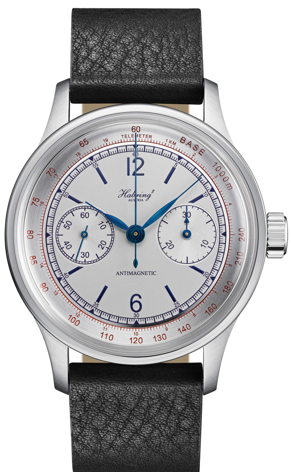 The dial of the Habring² Erwin LAB01 is in line with the vintage inspiration of the case. It has a typical “sector” layout, with four concentric segments. The markings and numerals of each segment are raised and finished in bronze for depth. Another particularity of the dial is that the outer railway minute divisions are perfectly aligned with the jumping seconds hand. The leaf hands are gold-plated brass to match the dial. Altogether, the Habring² Erwin LAB01 is a perfect example of a “sector/gilt” dial – something that should please more than one collector.