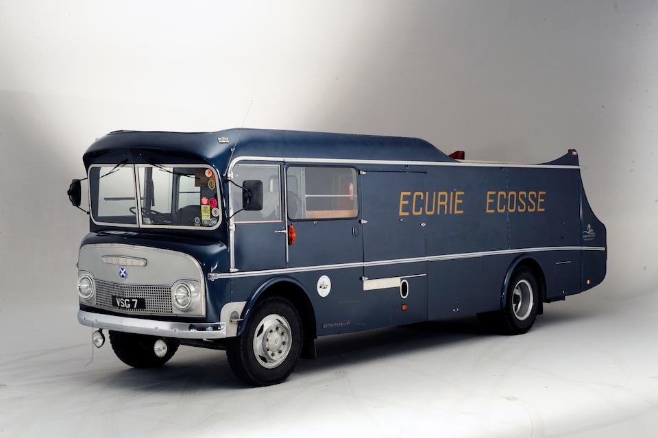 But, considering this is an article on racing transporters, we have to mention perhaps the most famous member of the Ecurie Ecosse racing team; the unique and rather cool Commer truck. How this truck came about is rather special too, as it was made possible by the Ecurie Ecosse Association, booming with new members following their 1956 and 1957 Le Mans wins. These members thought the team could benefit from eliminating the stress of transport by building this one of a kind machine. The truck is equipped with a crew cabin and small living quarters, storage for tools, equipment and parts and the ability to haul three cars at once. It is built on a Commer truck chassis with three-cylinder Commer TS3 diesel engine, and a fully bespoke, coachbuilt body as nothing in existence would fulfil the team’s needs.