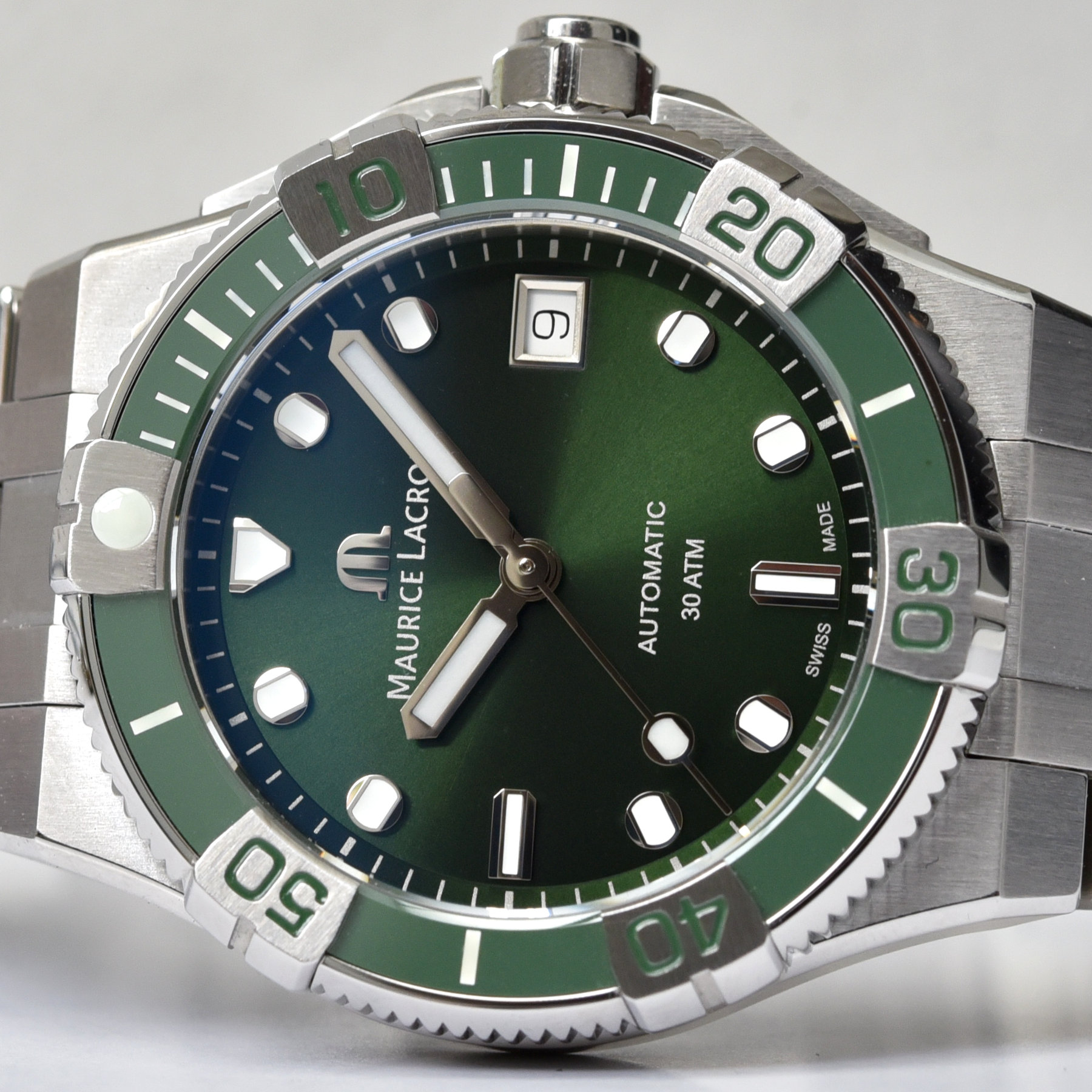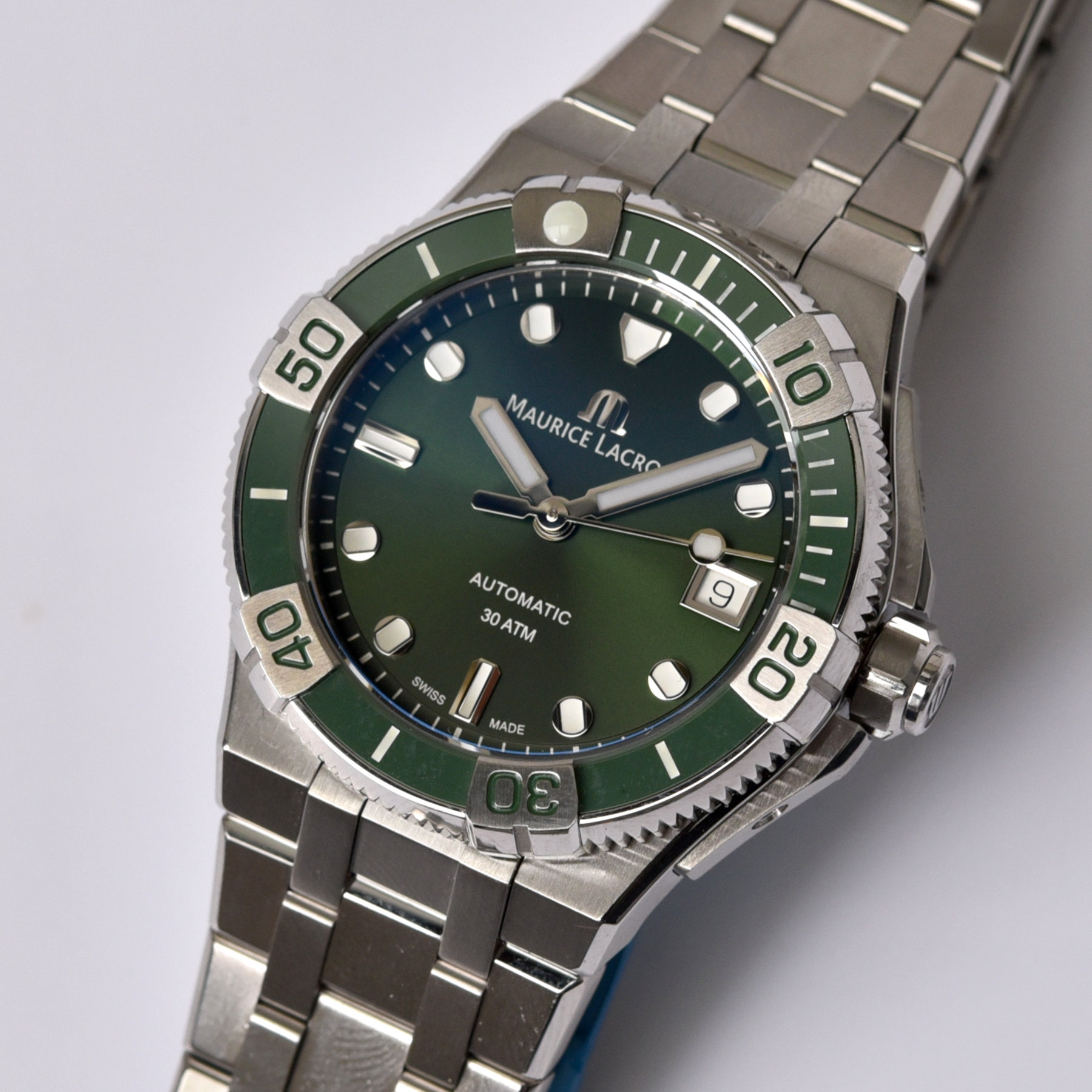 The debate about the right size for a watch is never one with a clear answer, that much we know. Hence the reason pretty much all watch manufacturers offer collections in various sizes. It makes perfect sense to offer a watch in two or three different dimensions as every single wrist is unique. It matters a great deal to pretty much every one of us that a watch should first and foremost be comfortable to wear as well as look good. Answering the call of the public, Maurice Lacroix not only presents the rugged Aikon Venturer dive watch in 38mm but now also with a very trendy green colour scheme.