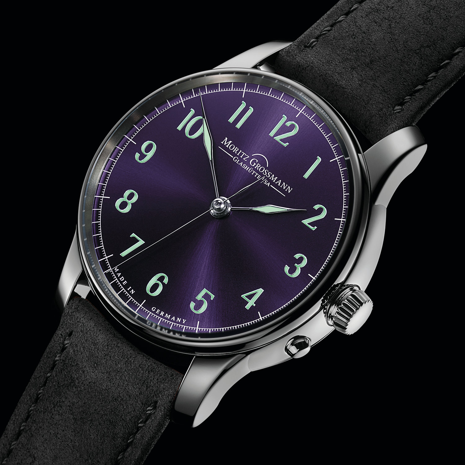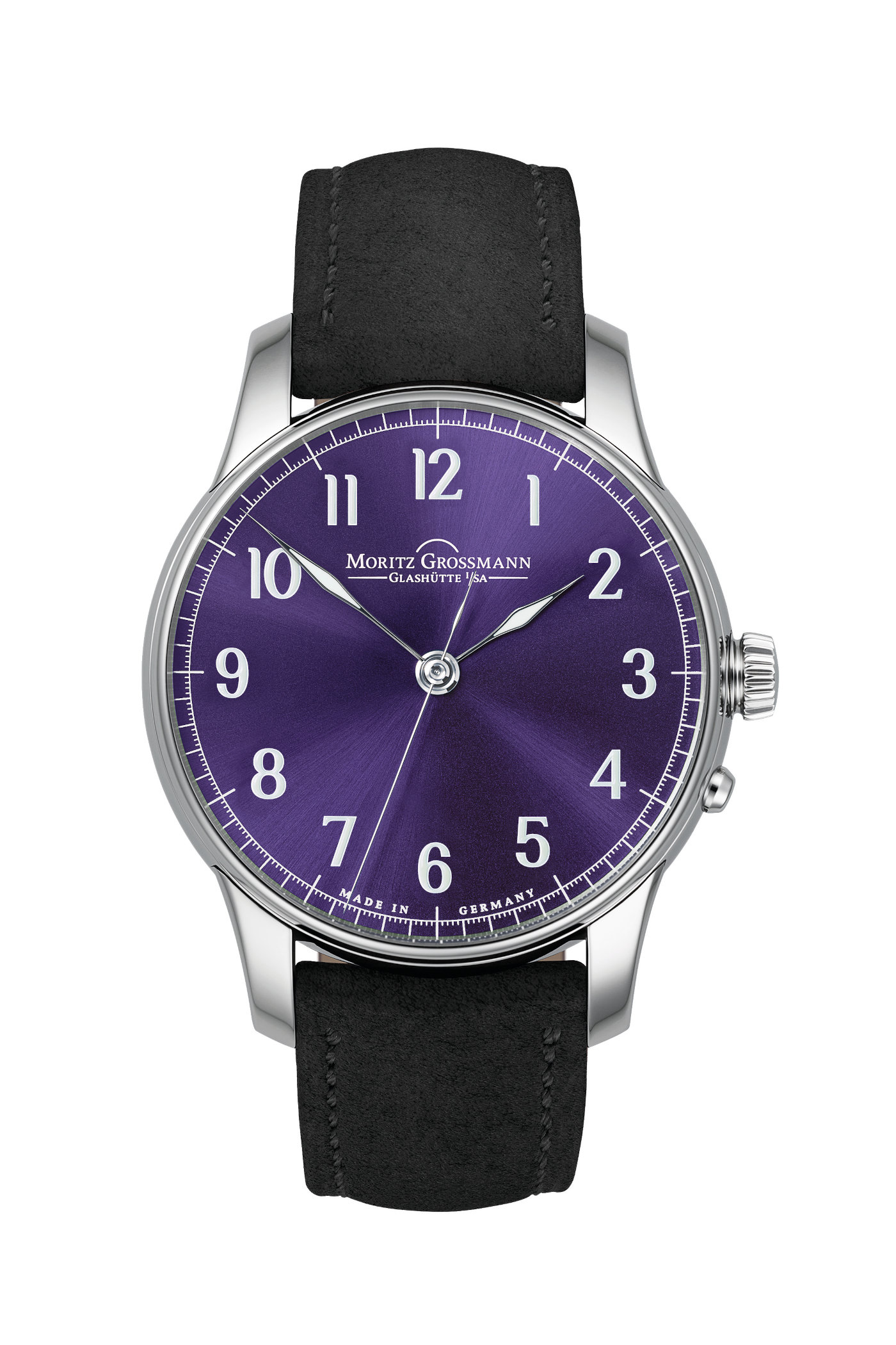 Moritz Grossmann’s watches are constructed and finished to the very highest level, with clever solutions and meticulous attention to detail. Virtually everything is done in-house, and the brand has found a way to blend traditional craftsmanship with contemporary design elements. One such stand-out element is the heat-annealed screws and hands, often finished in a violet tone. It would be only a matter of time then, for this colour to find its way to the dial.