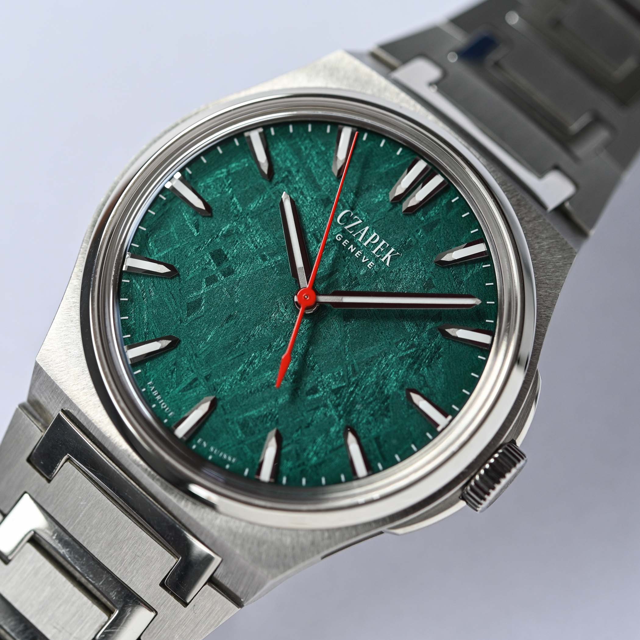 Quick Facts: 40.5mm x 10.6mm – steel case – water-resistant to 120m – green Gibeon meteorite dial – automatic in-house SXH5 calibre – 4Hz frequency – 60-hour power reserve – steel bracelet and folding buckle – CHF 25,000 (excl. taxes) – limited edition of 100 pieces