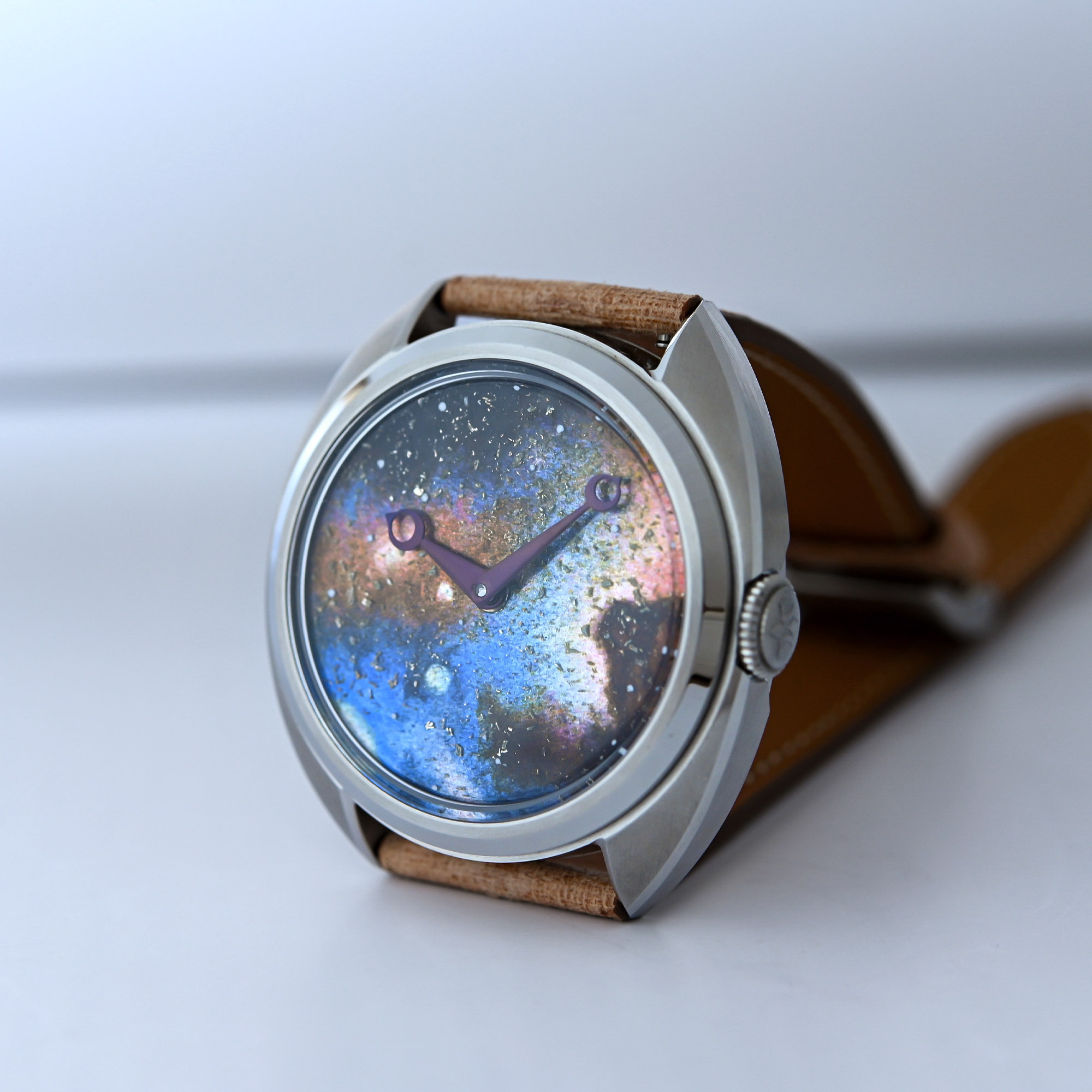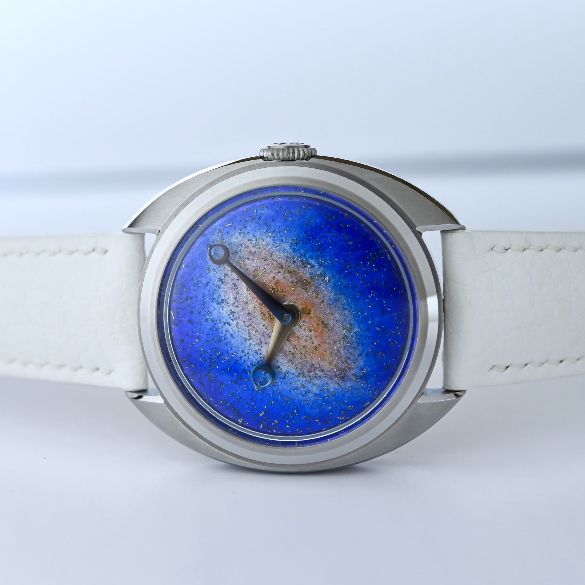Last but not least, the Céladon Galaxy and Nebula are star gazing invitations whose dials combine two enamel techniques, miniature painting and gold paillonné. The subtle sparkle of Paillonné involves the application of wafer-thin leaves of gold (paillons) and setting the design under a coat of translucent enamel (fondant).