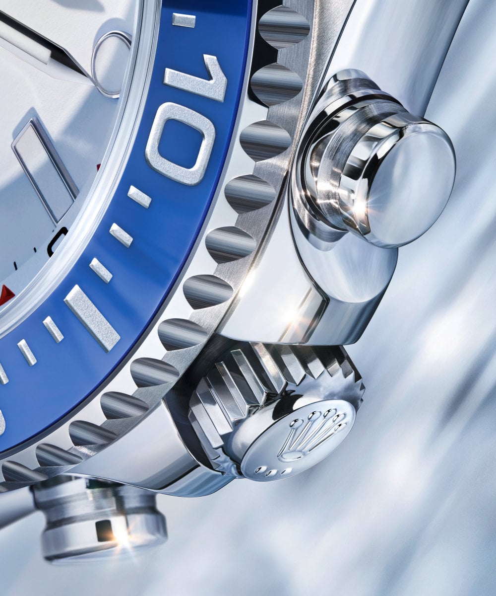 With a 44 mm diameter case, the Yacht-Master II immediately stands out. Inherently a chronograph, it features classic pushers on the right side as well as a unique bezel with a programmable memory function. What made it unique, besides its size and function, was its high-end price positioning, despite being in the professional collection. It was designed to assist skippers in keeping track of time during the complicated starting sequence of a regatta, which necessitated the creation of an entirely new movement, the calibre 4160 and later calibre 4161.