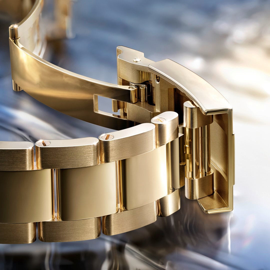 The Yacht Master II comes on a three-link bracelet that matches the material of the case. Broader than on the previous generation, the new bracelets give the Yachter Master II a more harmonious profile. Finished with brushed outer links and polished central links, both types of materials are fitted to an Oysterlock folding clasp that’s slightly slimmer than before, with the Easylink comfort extension allowing for approximately 5mm of adjustability. Prices are EUR 19,850 for the Yachter Master II Ref. 126680 in Oystersteel, and EUR 56,700 for the Yacht Master II Ref. 126688 in 18k yellow gold.