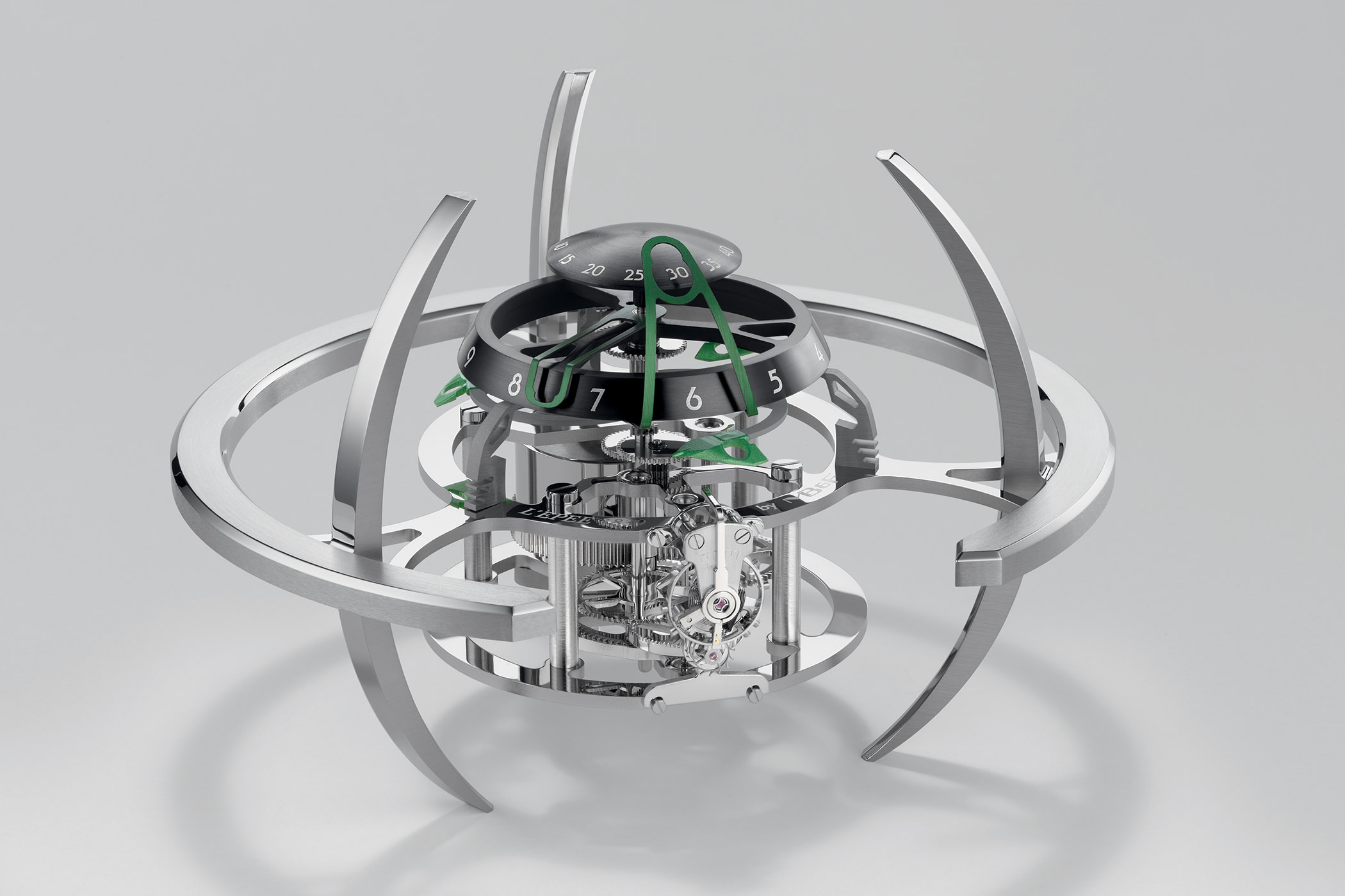 A futuristic, kinetic sculpture/table clock by MB&F and L’Epée.