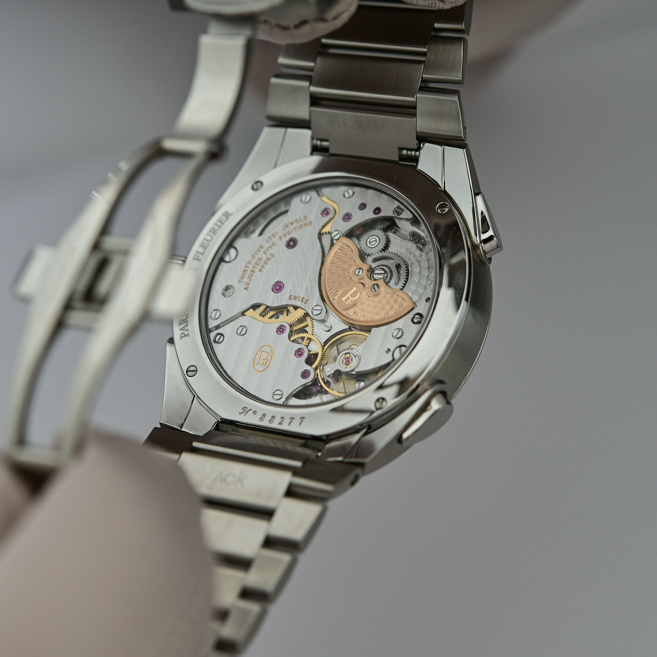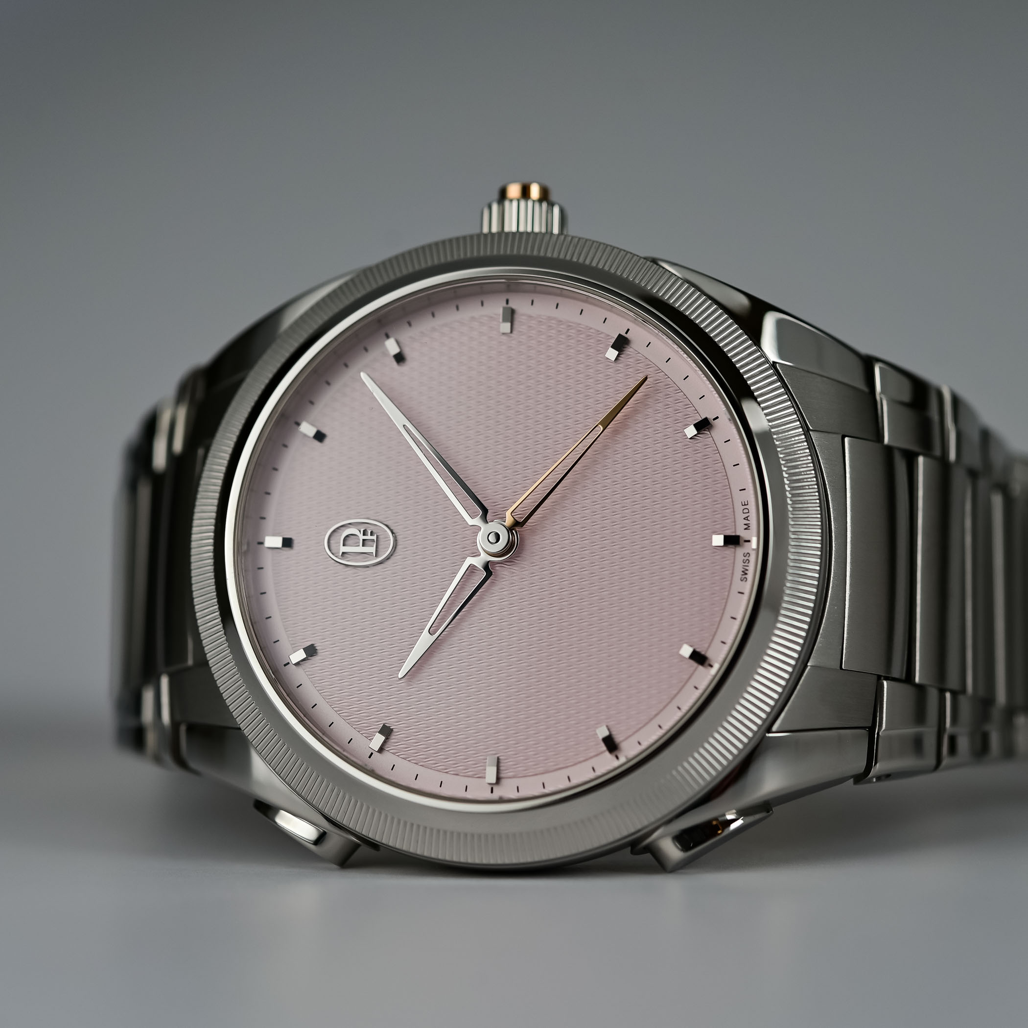 Parmigiani Fleurier’s turnaround, orchestrated by CEO Guido Terreni, is remarkable because it has been achieved on the back of one collection: the Tonda PF. Introduced just four years ago, the Tonda PF family now accounts for 85% of the brand’s sales. Often described as the brand’s luxury sports watch with an integrated bracelet, the adjective “luxury” could be replaced with “refined” or “understated” to convey the sophisticated aesthetics of the collection. More than just a pretty face, Parmigiani knows how to incorporate user-friendly complications without disturbing the serene soul of the Tonda PF. Introduced in 2023, the Tonda PF Minute Rattrapante features an ingenious complication that measures elapsed minutes on demand. The latest iteration of this delightful complication is now presented in a stainless steel case, paired with an Arctic Rose dial.