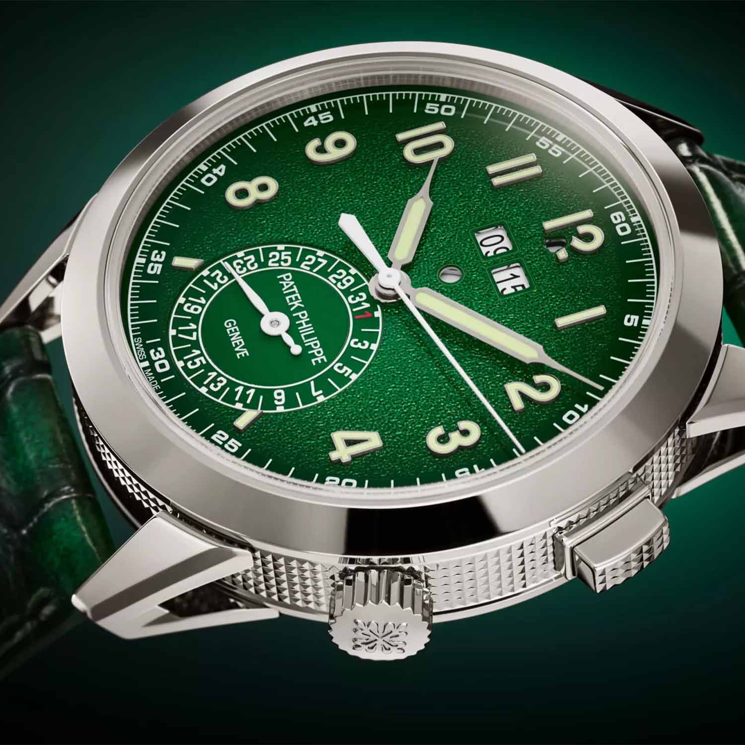 Among the many novelties presented by Patek Philippe on the occasion of Watches and Wonders 2026, the Geneva manufacture expands its range of complications useful for everyday life with the elegant yet modern Calatrava 5322G reference, featuring a 24-hour alarm. Available in green or blue, its design pairs a dial with a black-gradient rim and a grainy texture and a caseband decorated with a hobnail pattern, just like we’ve seen recently with the Annual Calendar Travel Time 5326G.