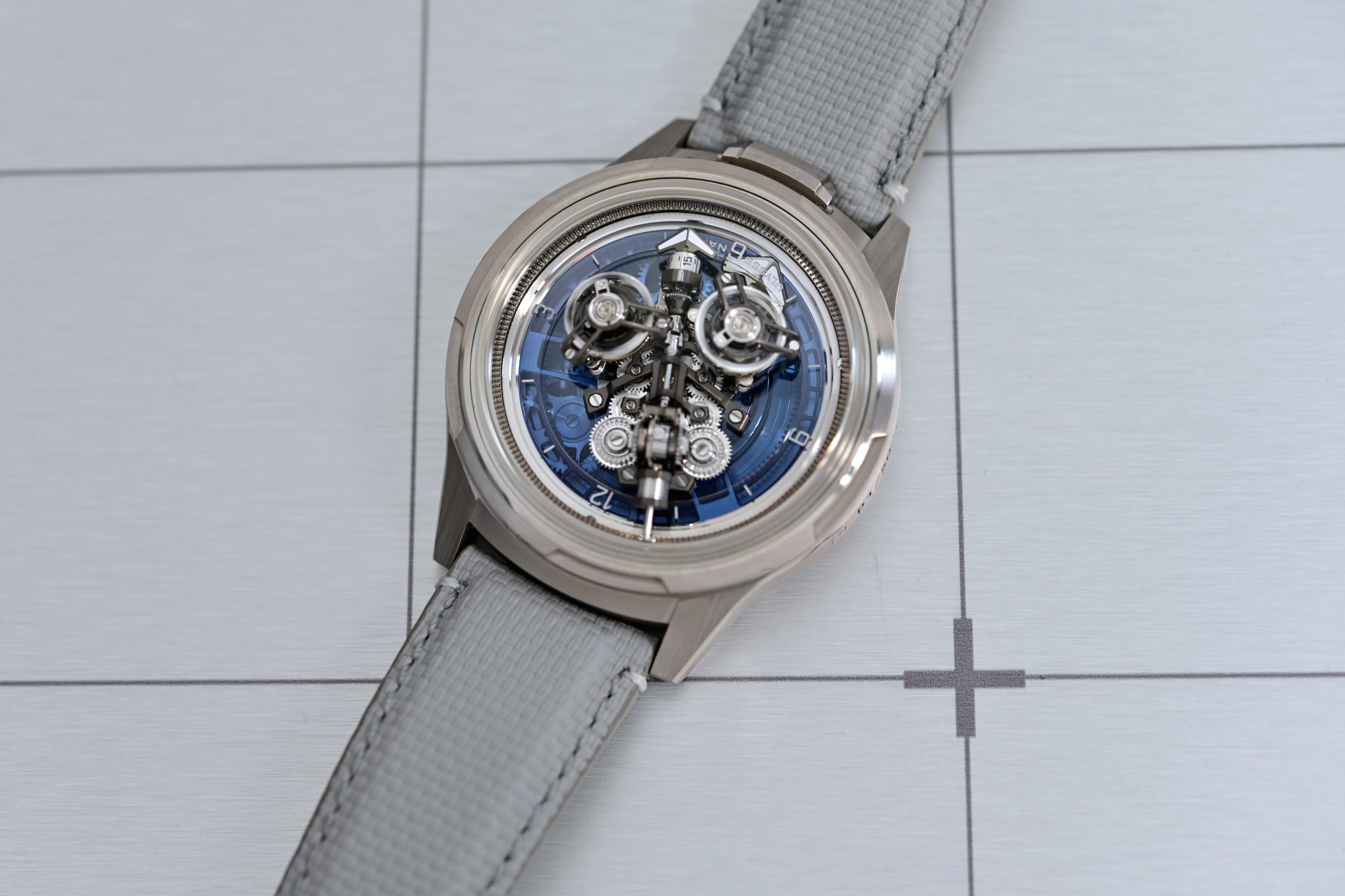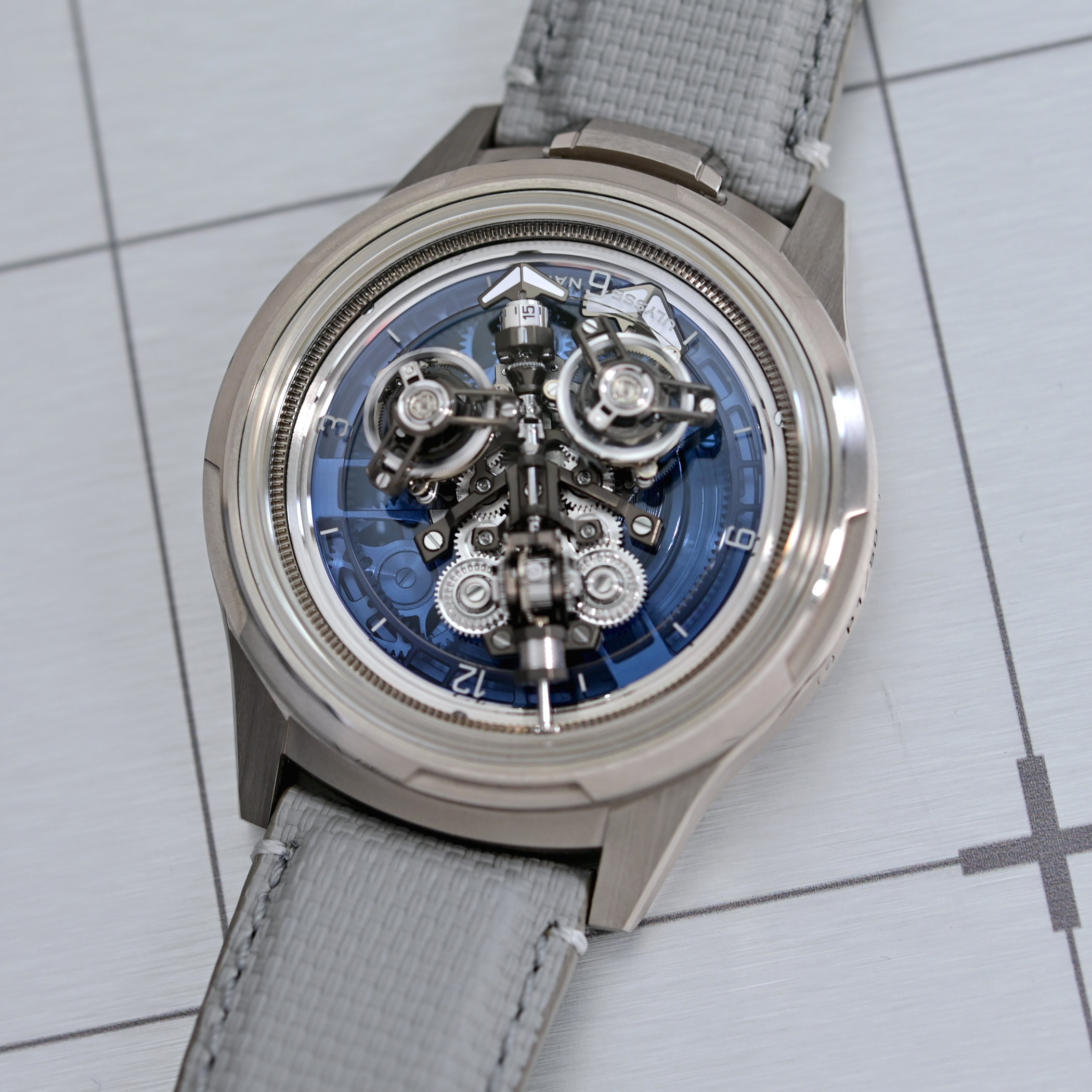 What distinguishes the Super Freak from its predecessors – time-only watches except for the Lab edition with a date indication – is the introduction of a seconds display. In a conventional watch, adding a seconds indication is sort of trivial. In a Freak, it is anything but. The entire movement is already in motion, rotating around its axis, which complicates the transmission of energy to any additional display. It is a minor addition visually, but mechanically significant, as it required rethinking how energy flows through the movement.