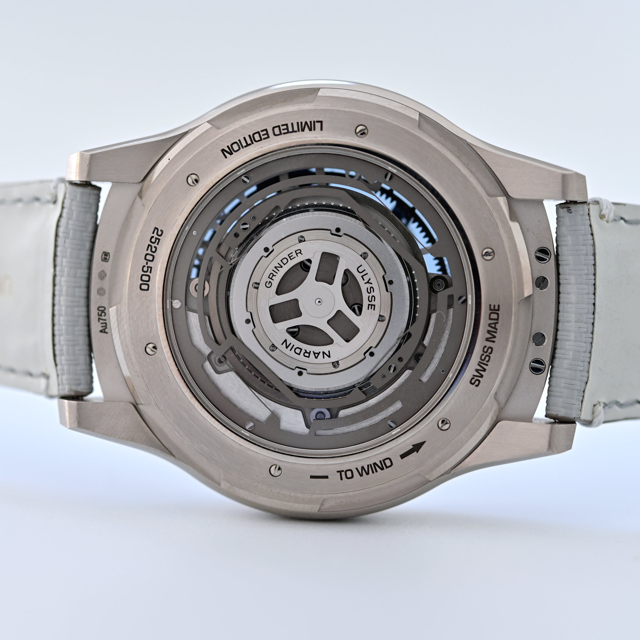 To guarantee overall quality, each Super Freak is assembled by a single watchmaker within Ulysse Nardin’s Haute Horlogerie Atelier. The watch is first assembled, then fully taken apart for cleaning, and finally reassembled for final adjustment. The total assembly time needed is around sixty hours, followed by several days of testing to verify performance.