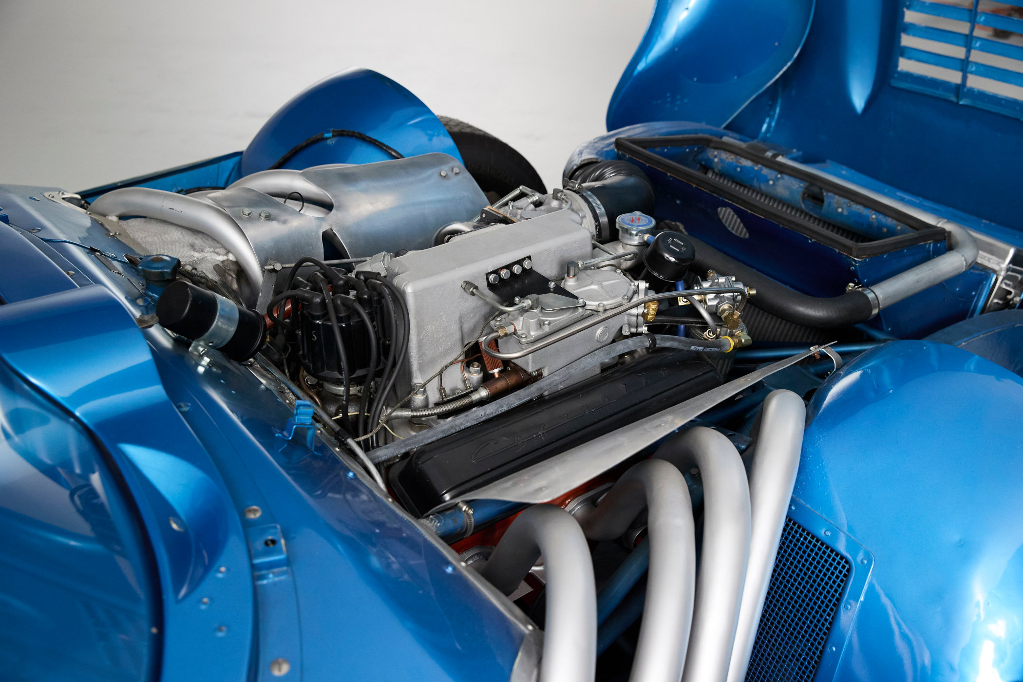 Power came from a 283 cubic-inch (4.6-litre) Chevrolet small block V8 fitted with high-performance parts that would up the power and lower the weight. A number of experimental components were used, such as an aluminium water pump, radiator core and clutch housing, as well as a magnesium oil pan. It was also fitted with Chevrolet’s Ramjet fuel injection system, comparable to top European race cars at the time. The engine’s output was about 310bhp, which was fed through a four-speed close-ration gearbox and breathed through side-exit exhausts.