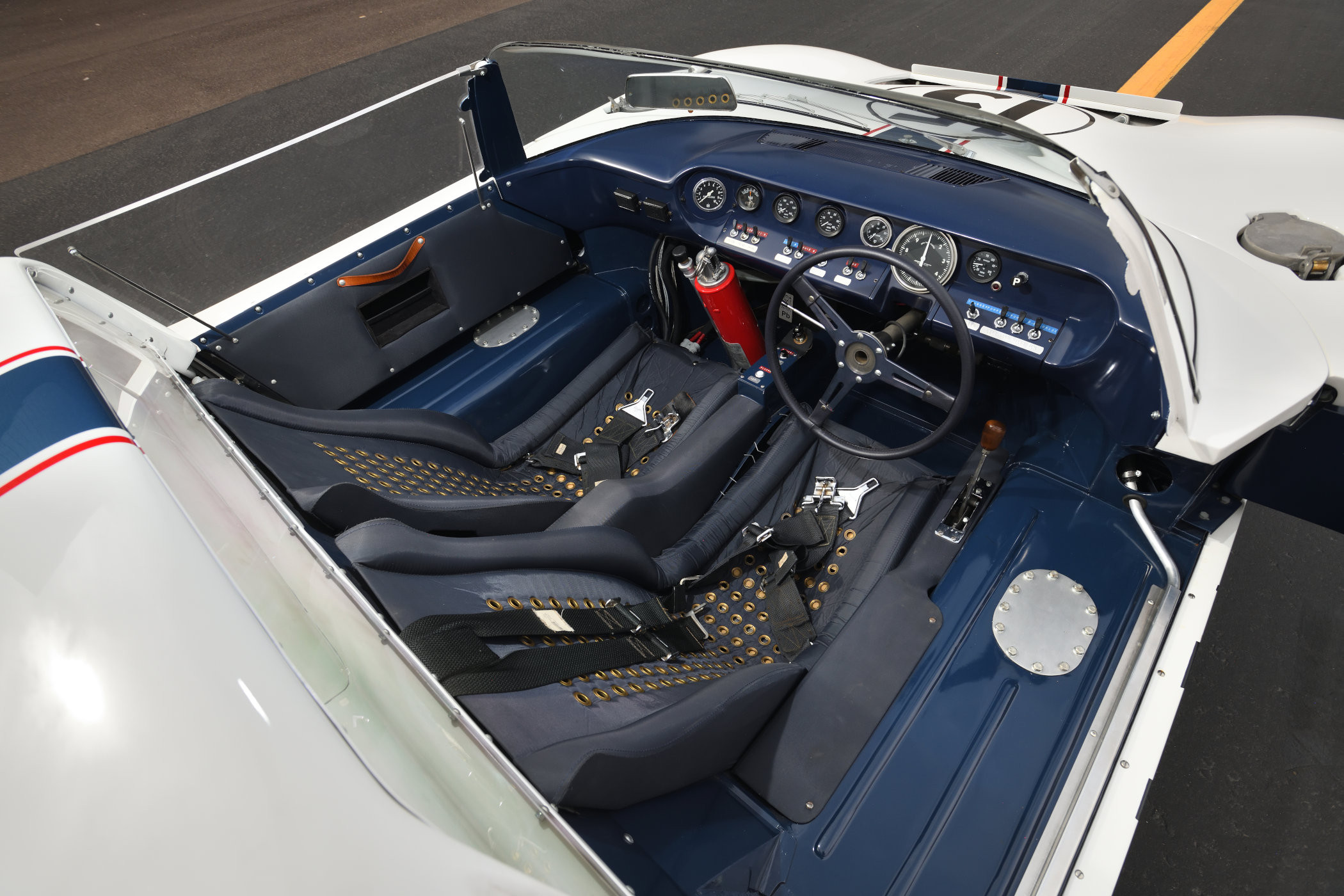 These updates included magnesium Halibrand wheels, a new air dam up front, sidemounted engine oil radiators, additional rear ventilation, a higher rear spoiler, and so on. Also noteworthy is the Cobra-spec 289ci (4.7 litre) V8 engine, mated to a ZF 5-speed gearbox. Both engine and gearbox are period correct to what the car would run back in its day, although they have been rebuilt. It’s also fitted with the ‘Bundle of Snakes’ exhaust manifold used in the development of the car. It also sits on period-correct magnesium Halibrand wheels, and is finished in the Ford of France colourscheme it raced with.