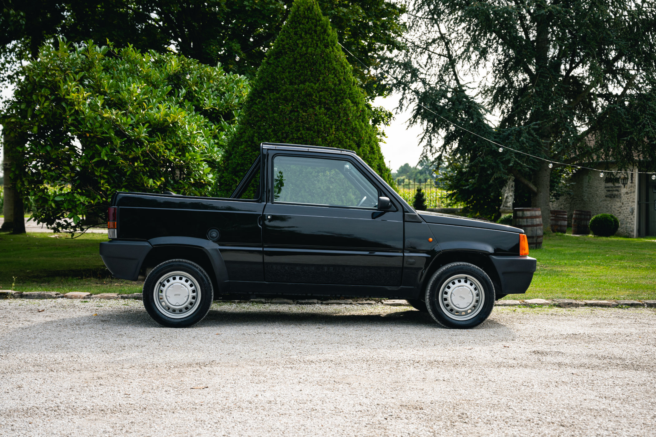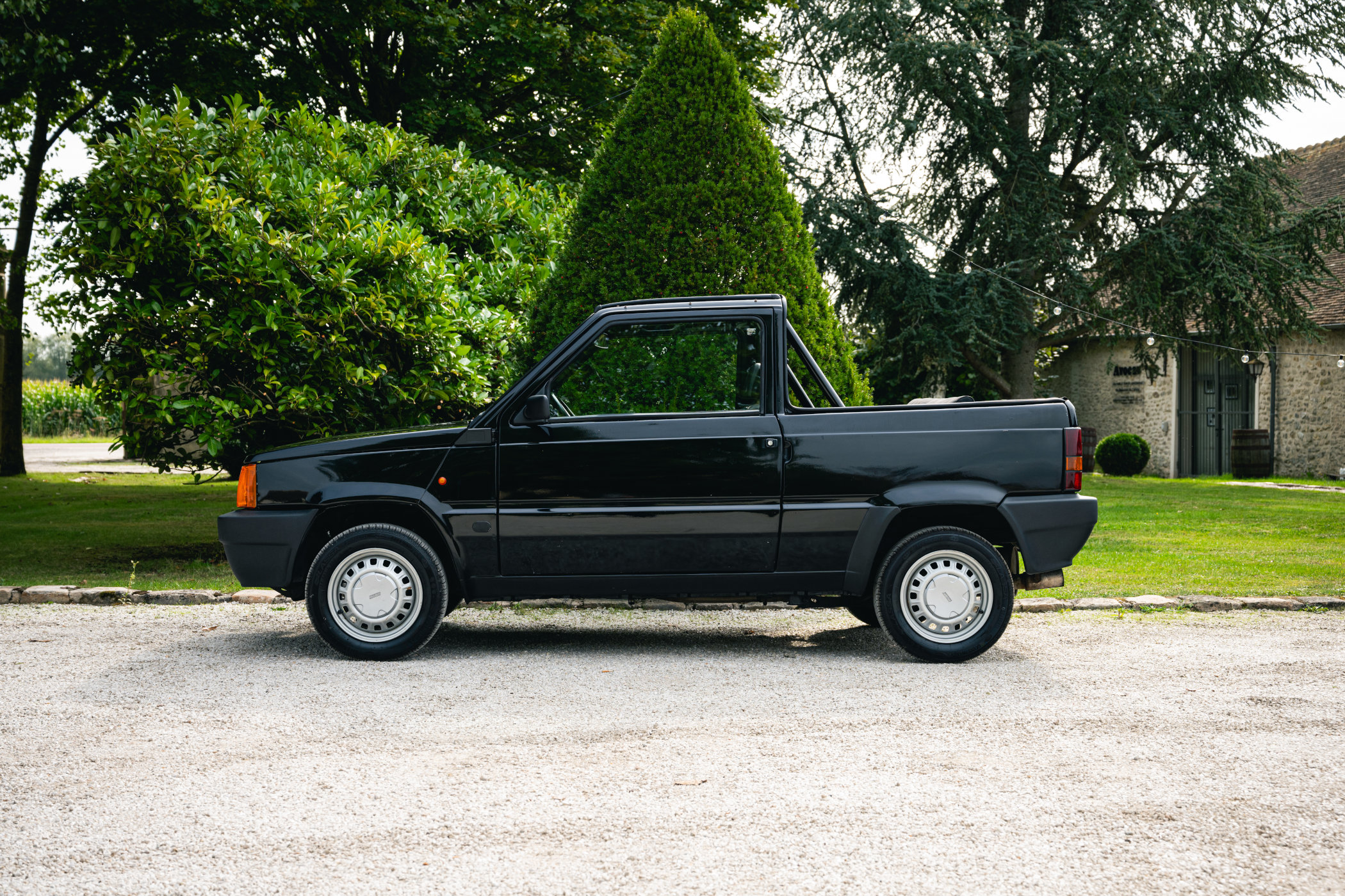 Chopping the roof of any car usually isn’t the easiest thing to do, especially when said car was never designed to become a convertible at all. It removes structural rigidity, greatly affecting a car’s safety and handling. To circumvent this issue, a roll bar has been installed, but other than that, the plucky Panda remains fairly unchanged. It’s been restored top to bottom, with a refurbished engine and mechanics, a newly upholstered interior and a fresh set of tyres. That includes the spare one, which is stored in the front, on top of the engine. Finished in deep black and with grey Alcantara front and rear seats, it looks all set for some glorious fun up and down Italy’s famous Amalfi coast. You have to hope for picture-perfect weather conditions, though, as the soft top that comes doesn’t look all that sturdy, and quite honestly, it’s a hassle to install!