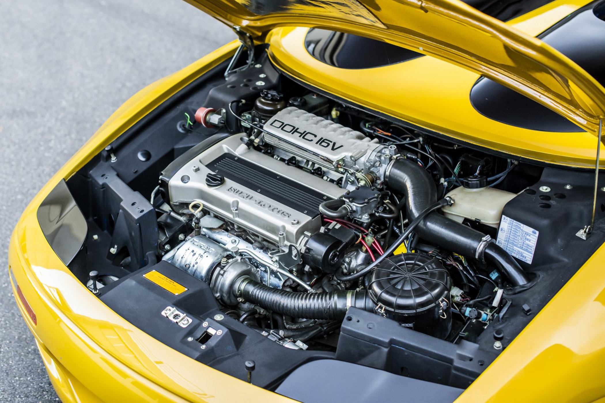 After the Elan went out of production, to be replaced by the edgy Esprit, the name made a surprise comeback in 1989. In a radical departure from Lotus’ legacy, it was the first and remains the only front-wheel drive car to be built by the Hethel-based manufacturer. The design of the Elan M100 series cars was again pretty simple and followed the same principles as the original Elan. Compact dimensions, pop-up headlights, a two-seater open-top body and a cut-off rear section. Up front, a 1.6-litre Isuzu engine, optionally fitted with a turbocharger, provided power. The inline four-cylinder engine, again with double overhead cams, produced 130bhp when normally aspirated, and 162bhp when fitted with the turbo. combined with the low weight of just under 1,000kgs, the reinterpreted Elan proved to be a fun and swift little sports roadster.