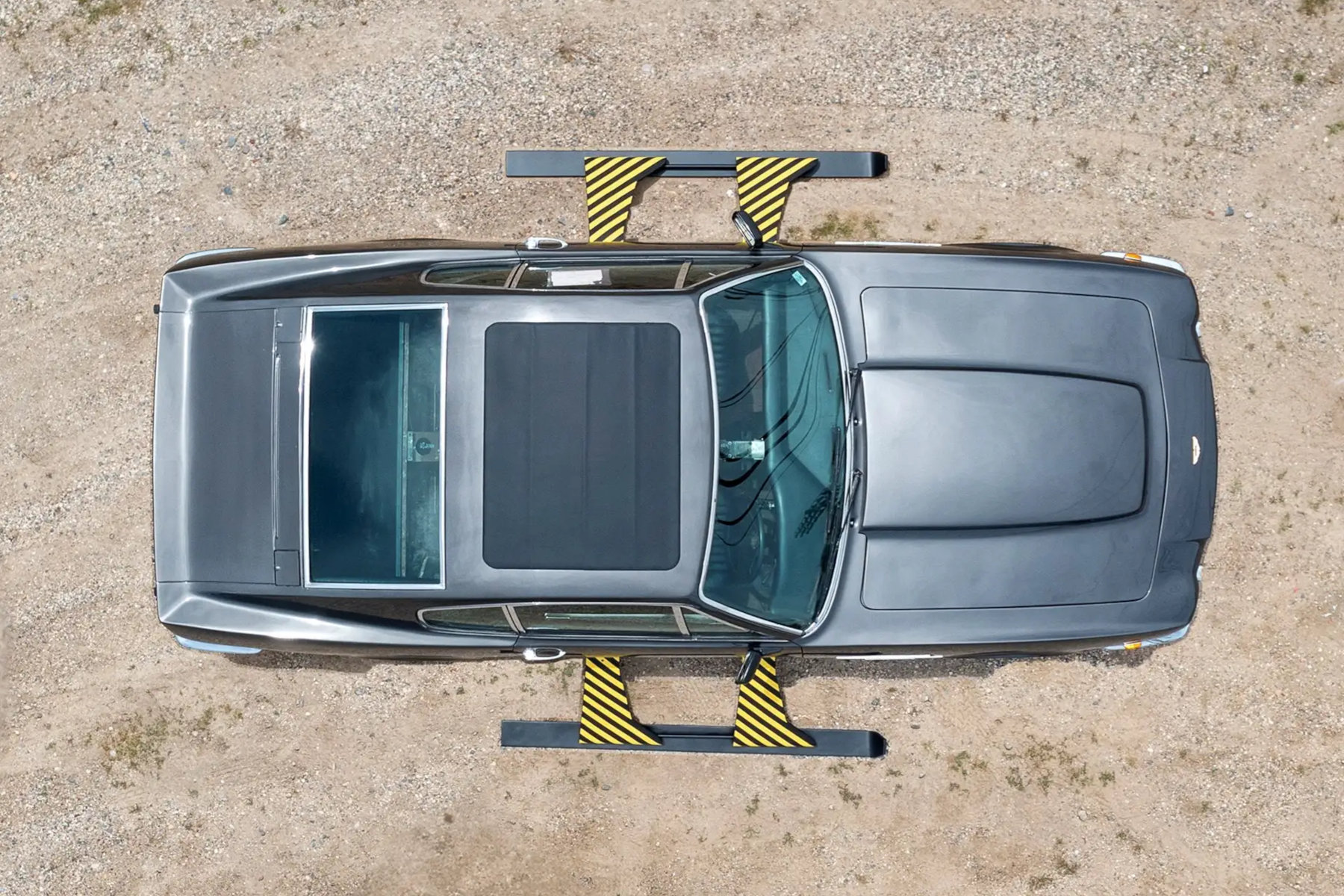 EON Productions, the company that produced the movie, had the car modified with an updated rear section, a carburettor-specification hood, new wheels and a new paint job in Cumberland Grey. To match the other three cars in use, a simulated sunroof was also added. Further updates included the gadgets needed for the film I mentioned earlier, although the skis never functioned. Shots of the outriggers deploying were taken with the help of a fibreglass mock-up and were edited into the action shots afterwards. The same goes for the rocket booster and rocket launchers. As this one was destined to be driven into a snow bank at the end of the movie’s big chase scene, the engine and gearbox were removed and a roll cage and skid plate were installed to both lighten and strengthen it.