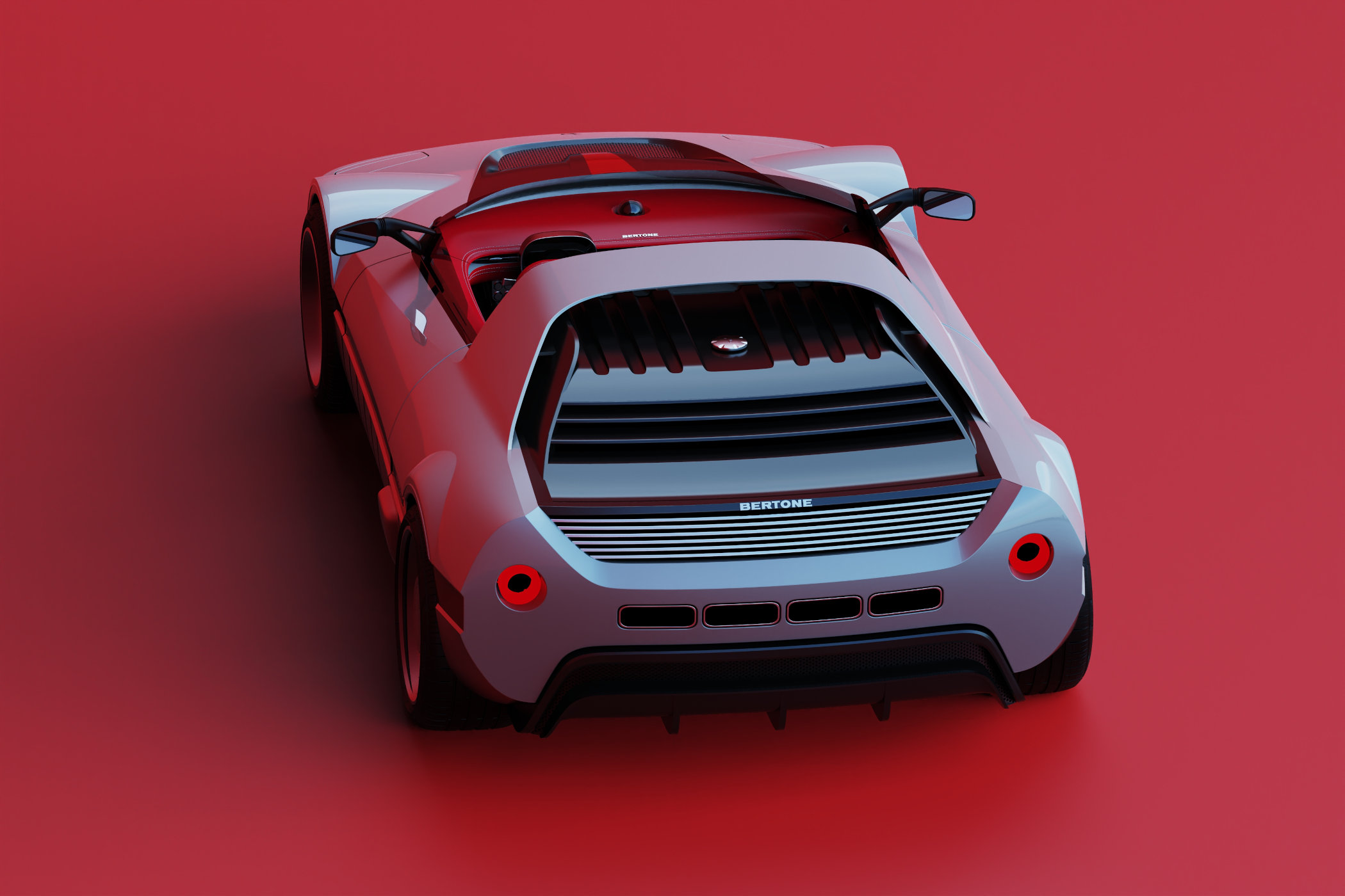 The roll hoop has been smoothed out and integrated into the body a bit more. And where the original featured zero doors, the Bertone Runabout has grown a pair, which makes things a lot more practical in everyday life. Details such as the air intake in front of the rear wheels, the vertical slats in the rocker panel and the short cut-off rear deck are still there though.