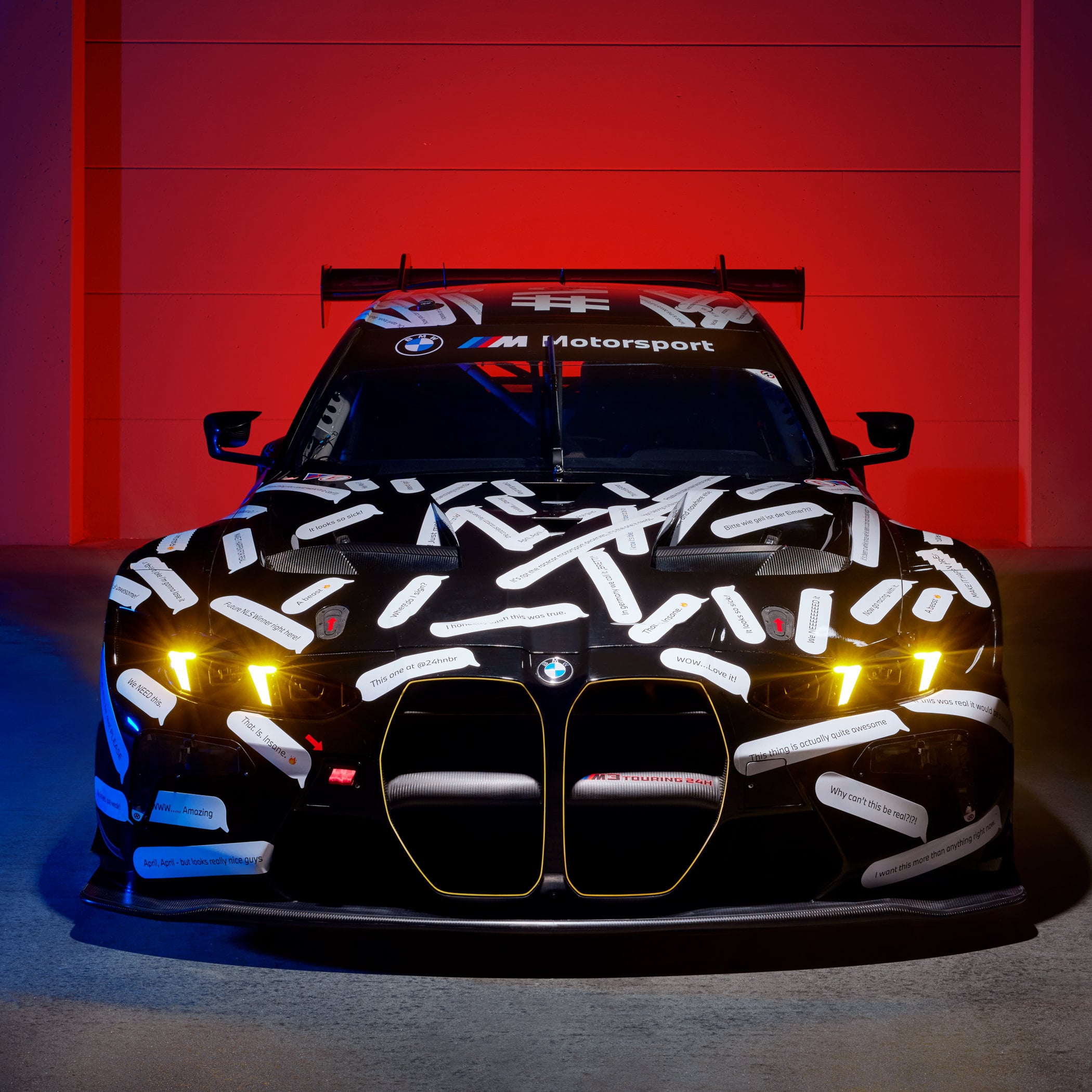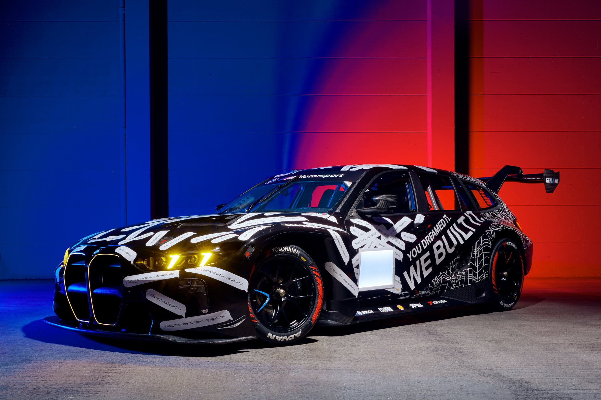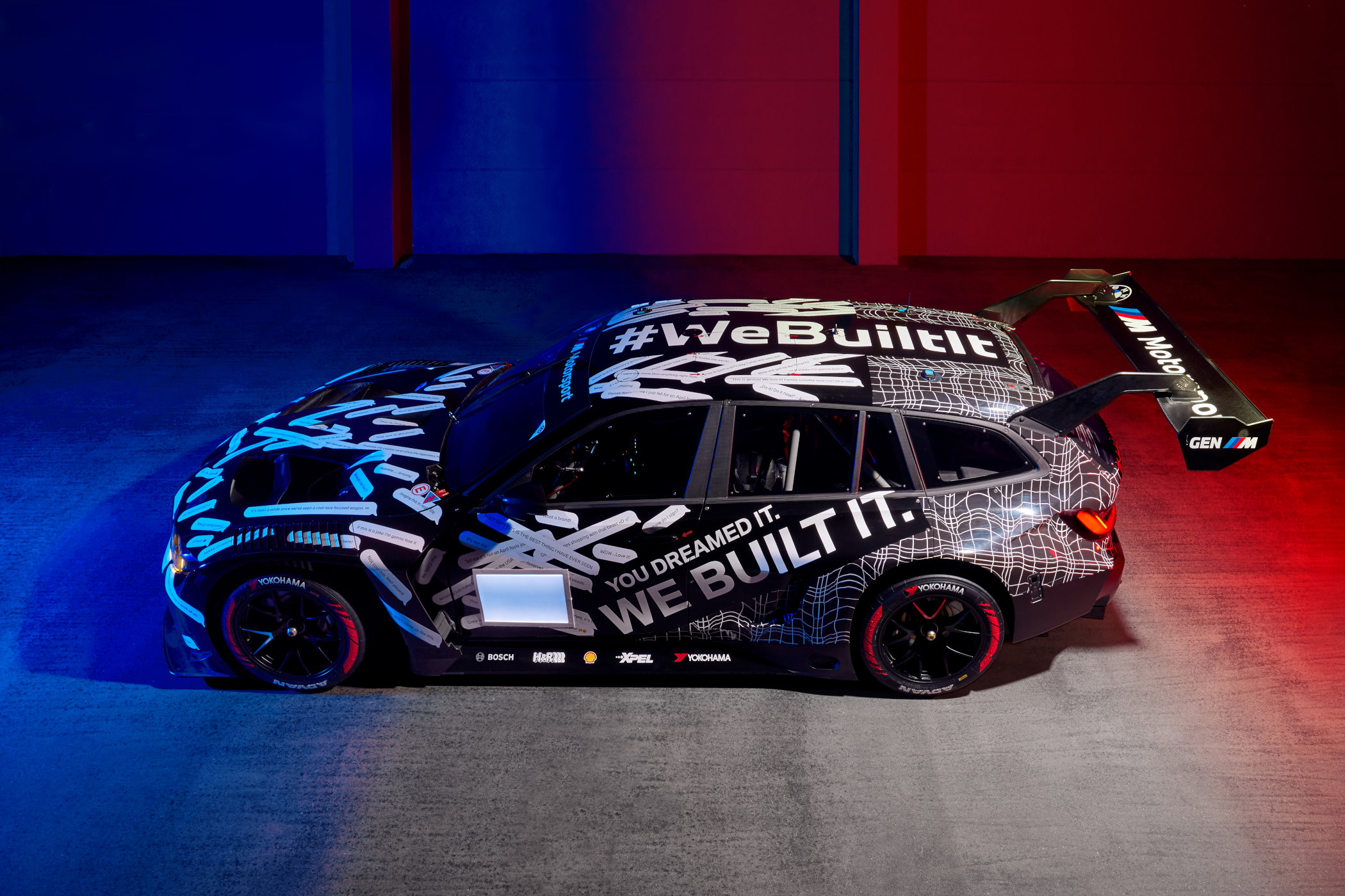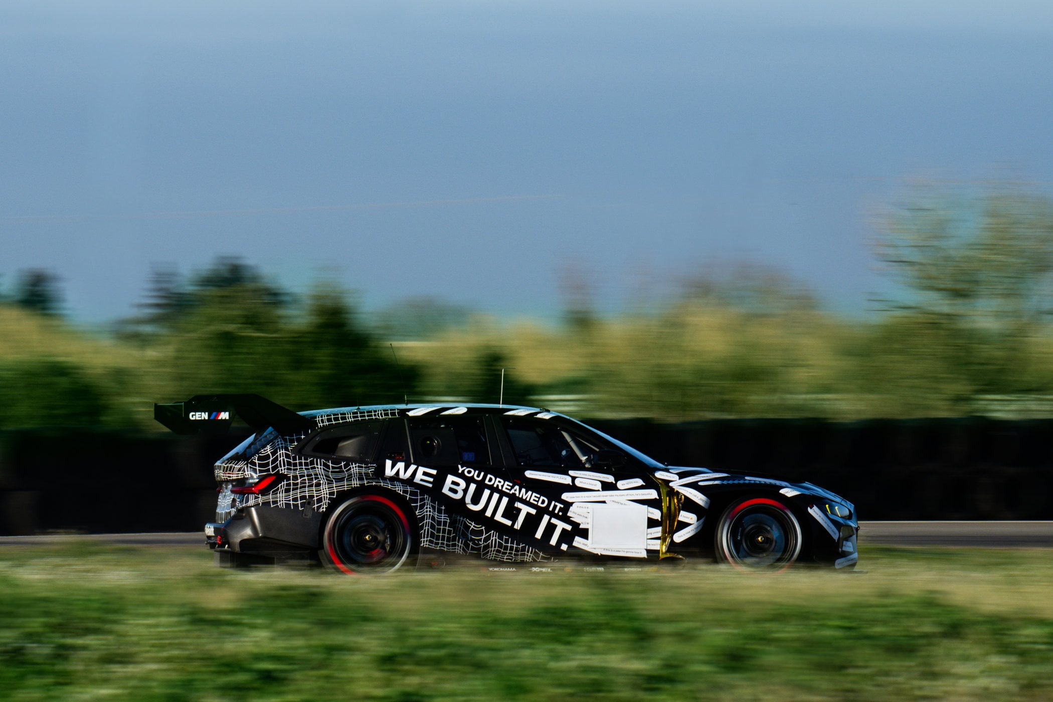 What’s also pretty cool about the M3 Touring GT3 is its livery. It’s not just a white-on-black paint job thrown on there for dramatic effect, but actually a reference to last year’s April Fool’s gag and the subsequent response to make it a reality. BMW has slapped “You Dreamed It, We Built It” on the doors and even added replies from people on various social media platforms to it. You can read comments like “If this is a joke, I’m gonna lose it”, “We NEEEEEED It” and “That. Is. Insane” all over the car. We couldn’t have said it better ourselves, and absolutely agree with every single comment! It is just the coolest thing BMW has done, ever!
