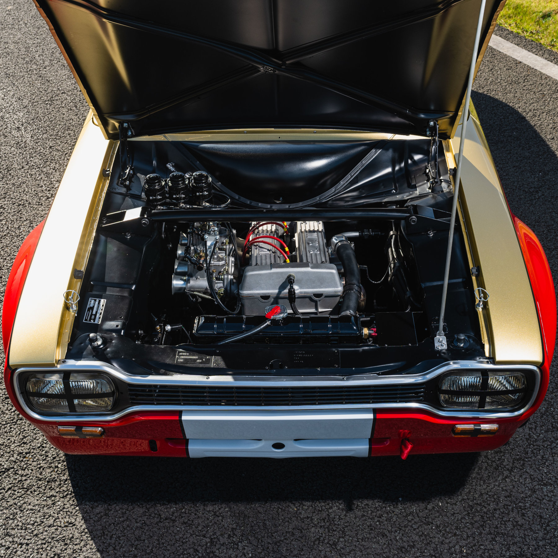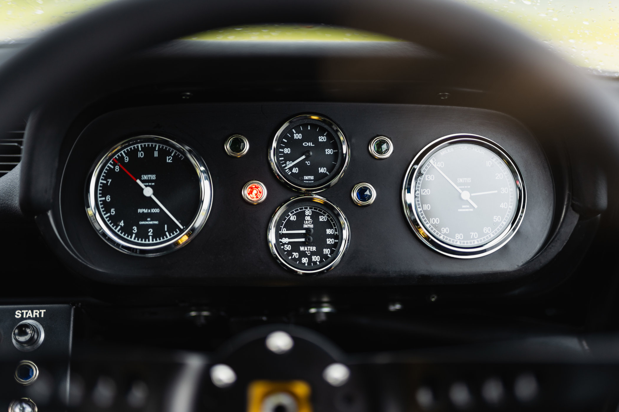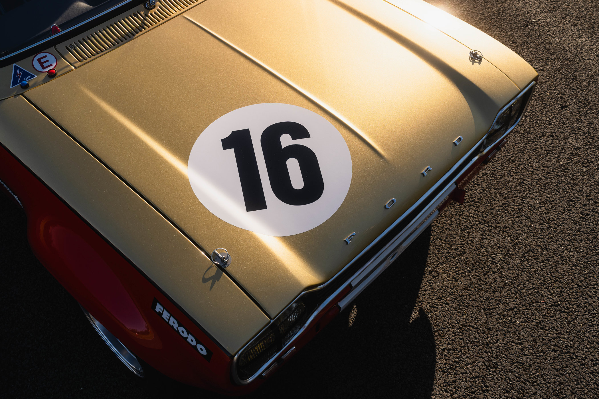 Combine that with a razor-sharp throttle response from a period-correct 1.8-litre Ford four-cylinder Twin Cam engine with double Weber 45DCOE carburettors and an output of 205 horsepower, and things start to click. The straight-cut 4-speed Ford ‘Bullet’ gearbox allows you to push the car to its very edge while still maintaining control. Stopping power comes from disc brakes all around, which were also installed on the 1968 original, but here they have been updated a touch to make things safer once again.