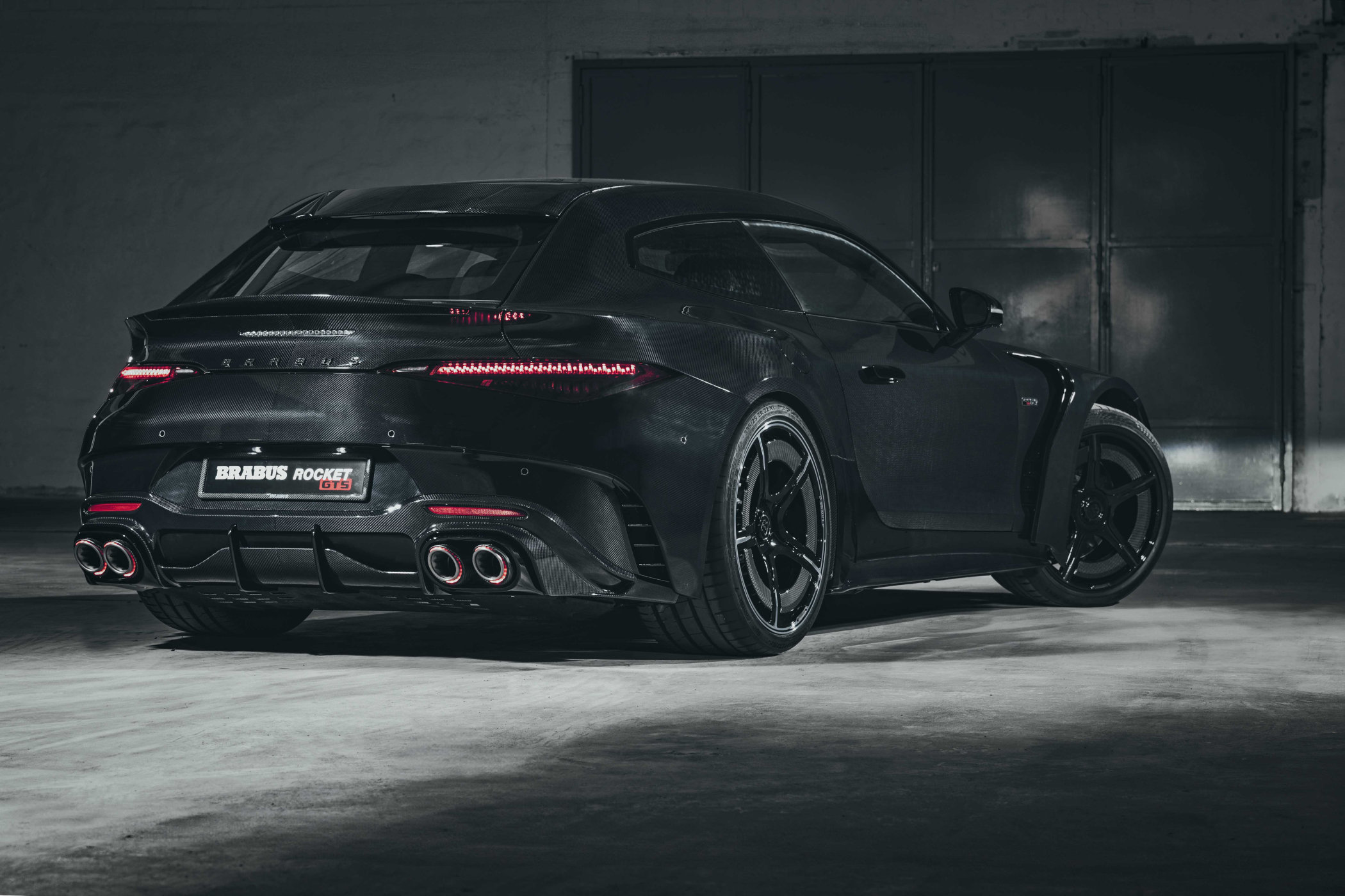 Barbus actually calls it the first ‘Hyper Gran Turismo Shooting Brake’, and there’s some logic in that. Everything starts with a ‘normal’ Mercedes-Benz SL 63 S E Performance that’s taken off the assembly line and rolled into Brabus’ workshop. Looking at the tail lights reveals the Rocket GTS is indeed based on the open-top powerhouse SL and not the AMG GT, which might have been a more expected starting point for such a conversion. The entire body is replaced by a high-strength exposed structure carbon fibre shell finished with a clear high-gloss sealer for a rather sinister look.