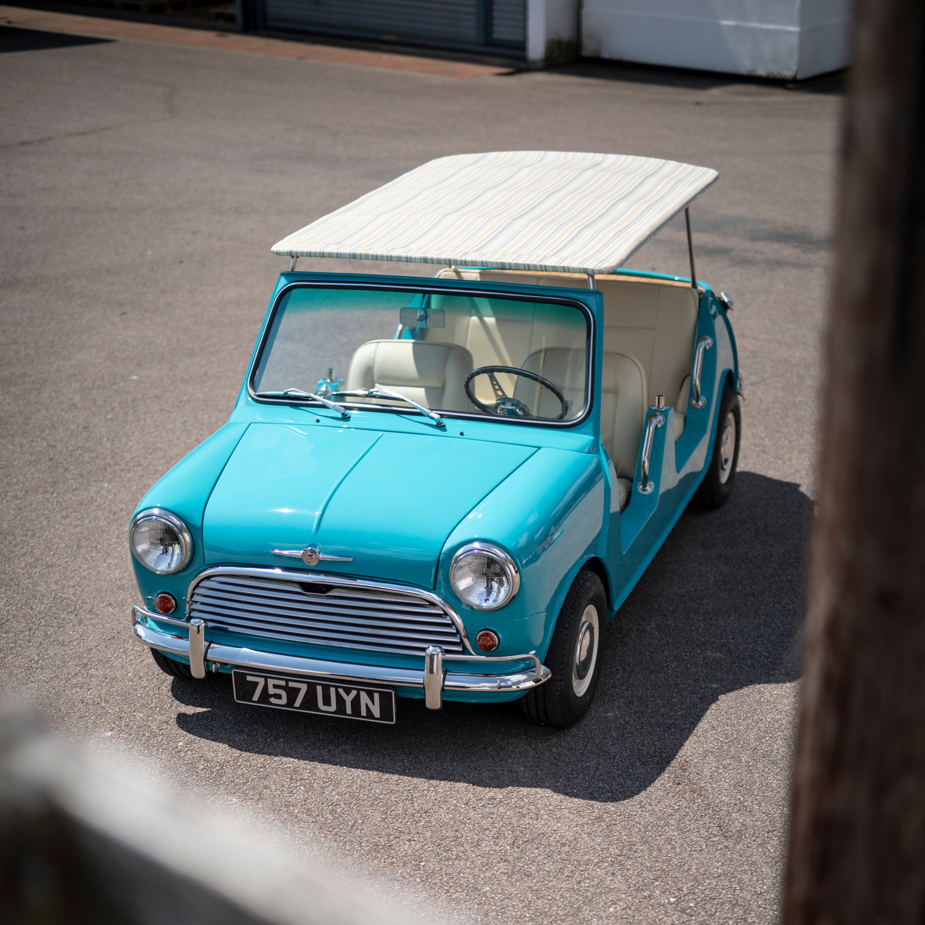 A coachbuilt classic Mini in "Jolly" style ready for the French Riviera