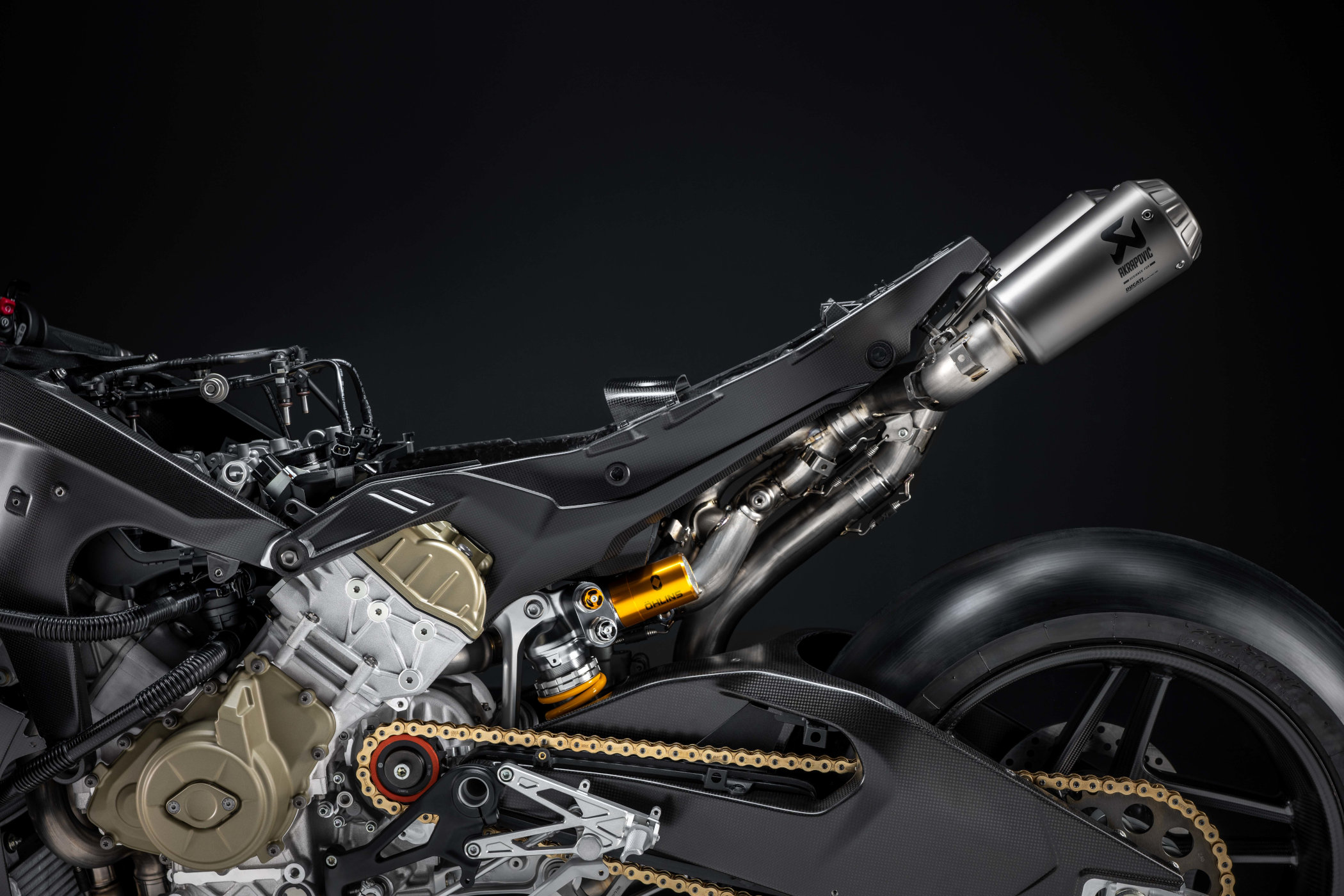 The Superleggera V4 Centenario is directly derived from the WorldSBK-competing Panigale V4 and the Desmosedici GP26 bike piloted by two-time MotoGP World Champion Francesco “Pecco” Bagnaia and seven-time and this year’s defending MotoGP World Champion, Marc Marquez. And it holds no compromise, cuts no corners and is an engineering tour de force in pursuit of unbridled performance. It starts with an ultra-light and rigid full carbon fibre chassis, a first for a road bike. But that’s not all, as the fairing, the swing arm, and even the wheels are in carbon. Another world’s first is the carbon sleeves for the front fork. The end result is a bike that weighs just 173 kilos dry in stock road-legal form, or 167 kilos with the special Racing Kit fitted, which is apparently fitted as standard. This Racing Kit makes the Supereggera V4 Centenario suited for the track only, and includes a special Akrapoviç exhaust, DAVC Race Pro software, a lower fairing, and open clutch, swingarm and alternator covers made of carbon fibre.