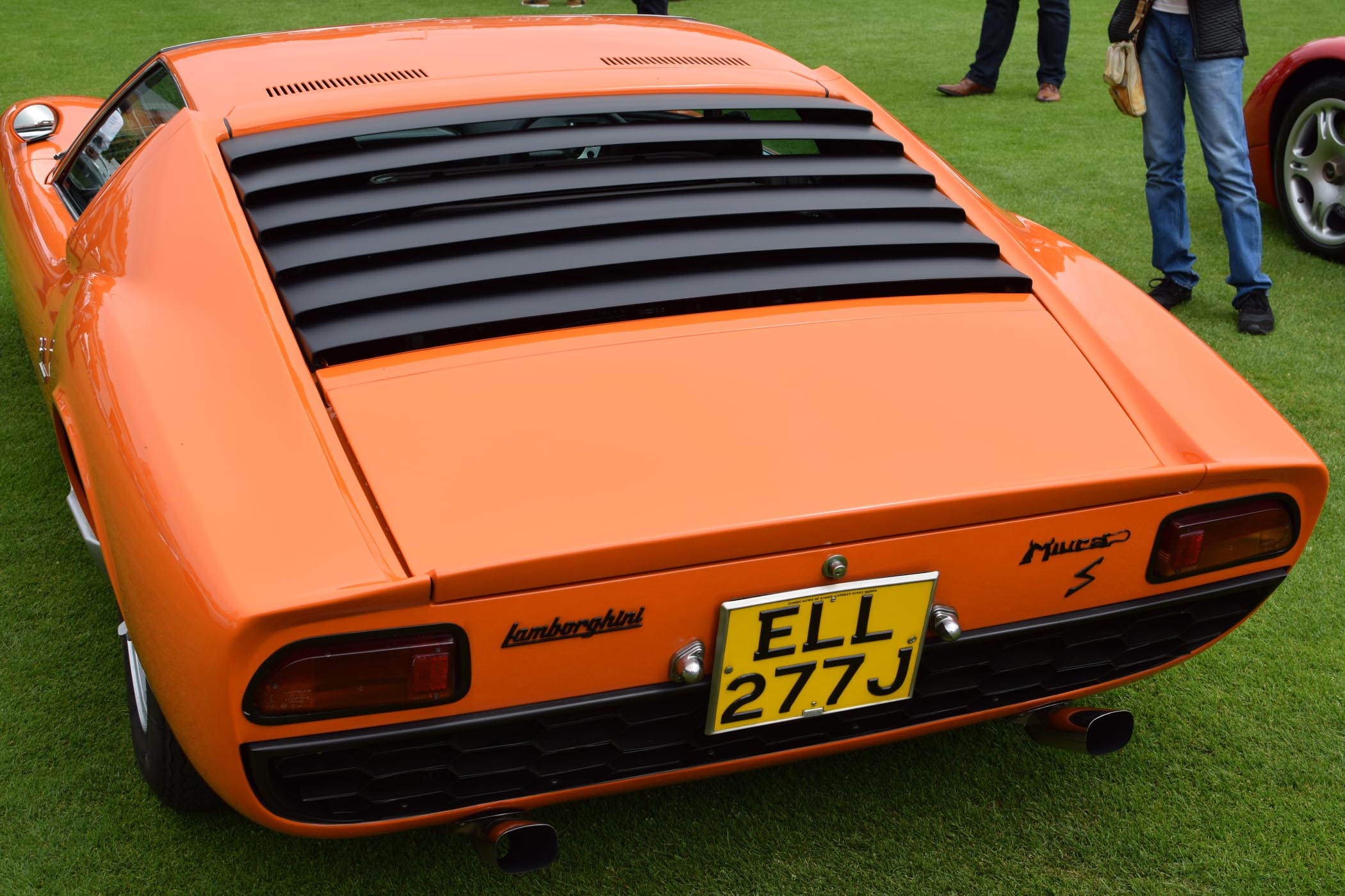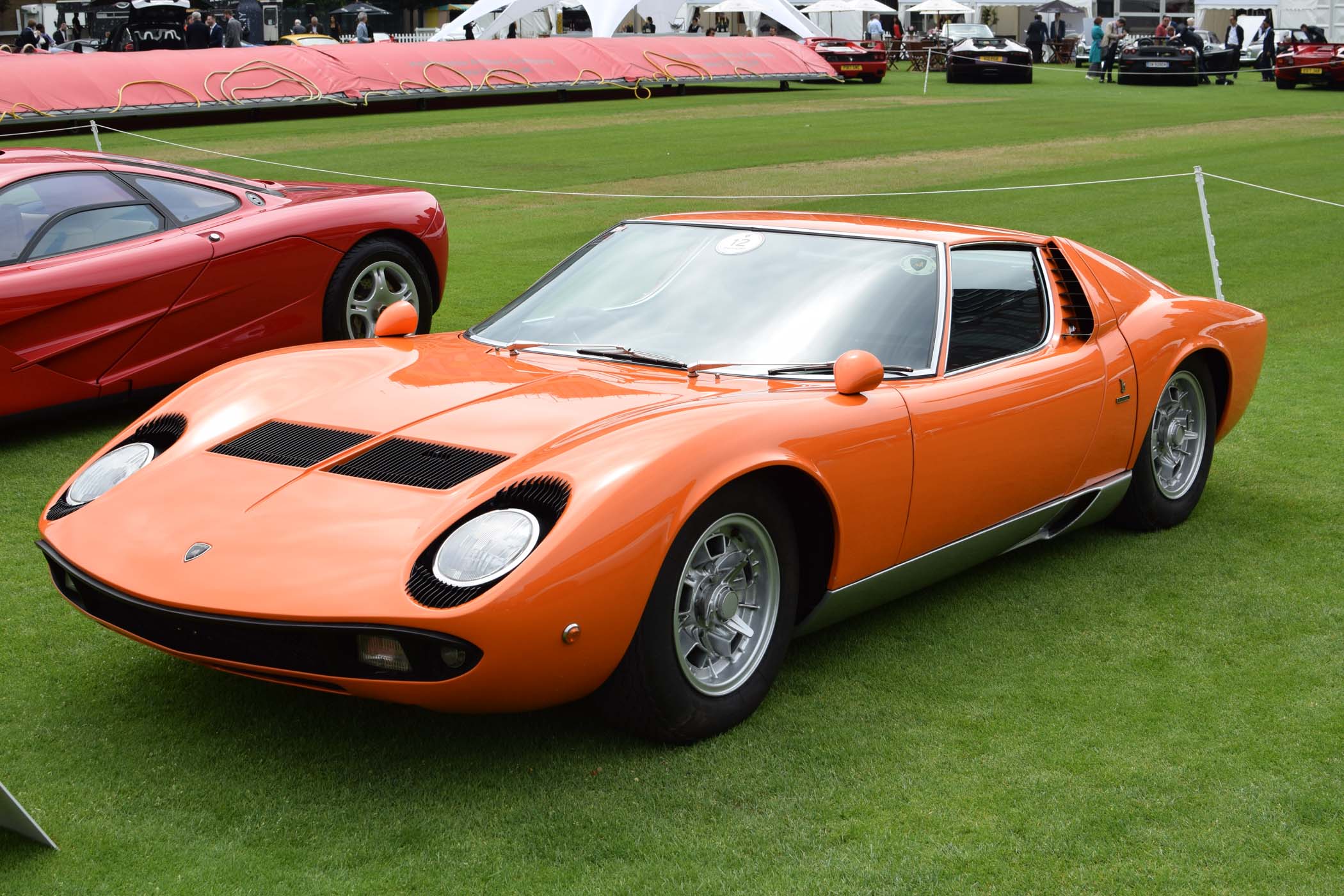 The rolling chassis of the Miura was presented at the 1965 Turin Auto Show with the prototype introduced a year later at the Geneva Motor Show. Penned by Marcello Gandini, then employed by Bertone, the car caused quite a storm when unveiled. The shape was unlike anything that came before it, and quite frankly unlike anything that has been done since. Named after a famous Spanish fighting bull, a theme very common to Lamborghini, the Miura had a very sleek and curvaceous profile, riddled with unique details. Some of the most laureled design elements are the flip-up headlights with “eyelashes”, the doors that resemble bull horns when opened and viewed from the front, and the clamshell rear bodywork section.