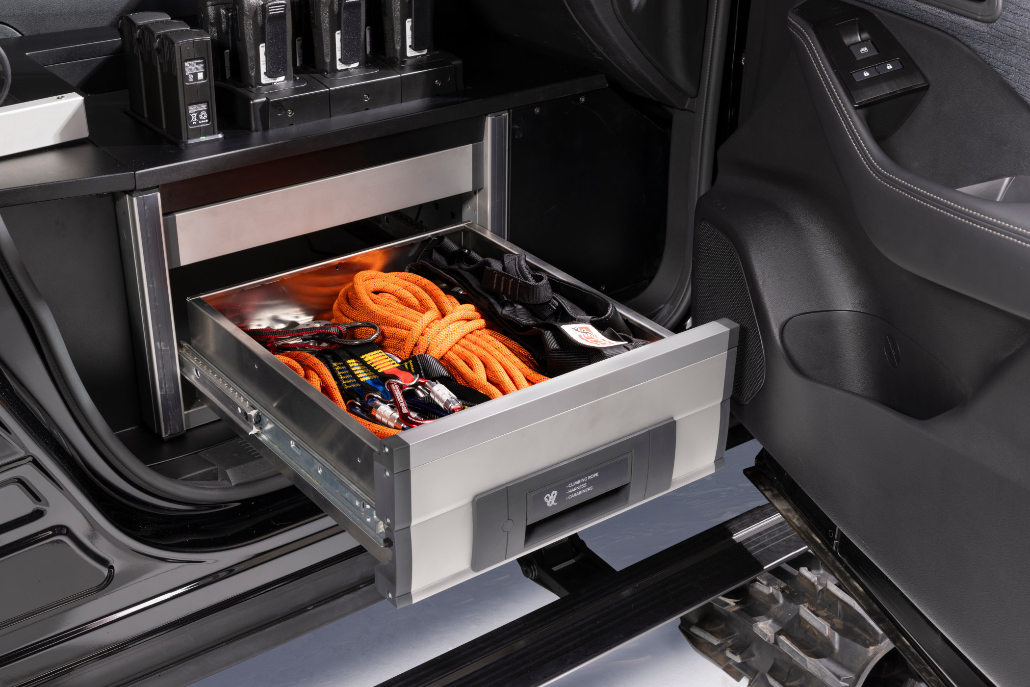On the inside, the seating arrangement has been rearranged to accommodate a full stretcher to carry a person to safety. The rear seat behind the driver has been rotated for medical personnel to assist an injured skier or hiker, and of course, there’s a full medical kit as well. The crew also has a proper GPS navigation, weather and communications system at its disposal, so it can work together with other emergency services crews when out on a rescue mission in even the toughest conditions.