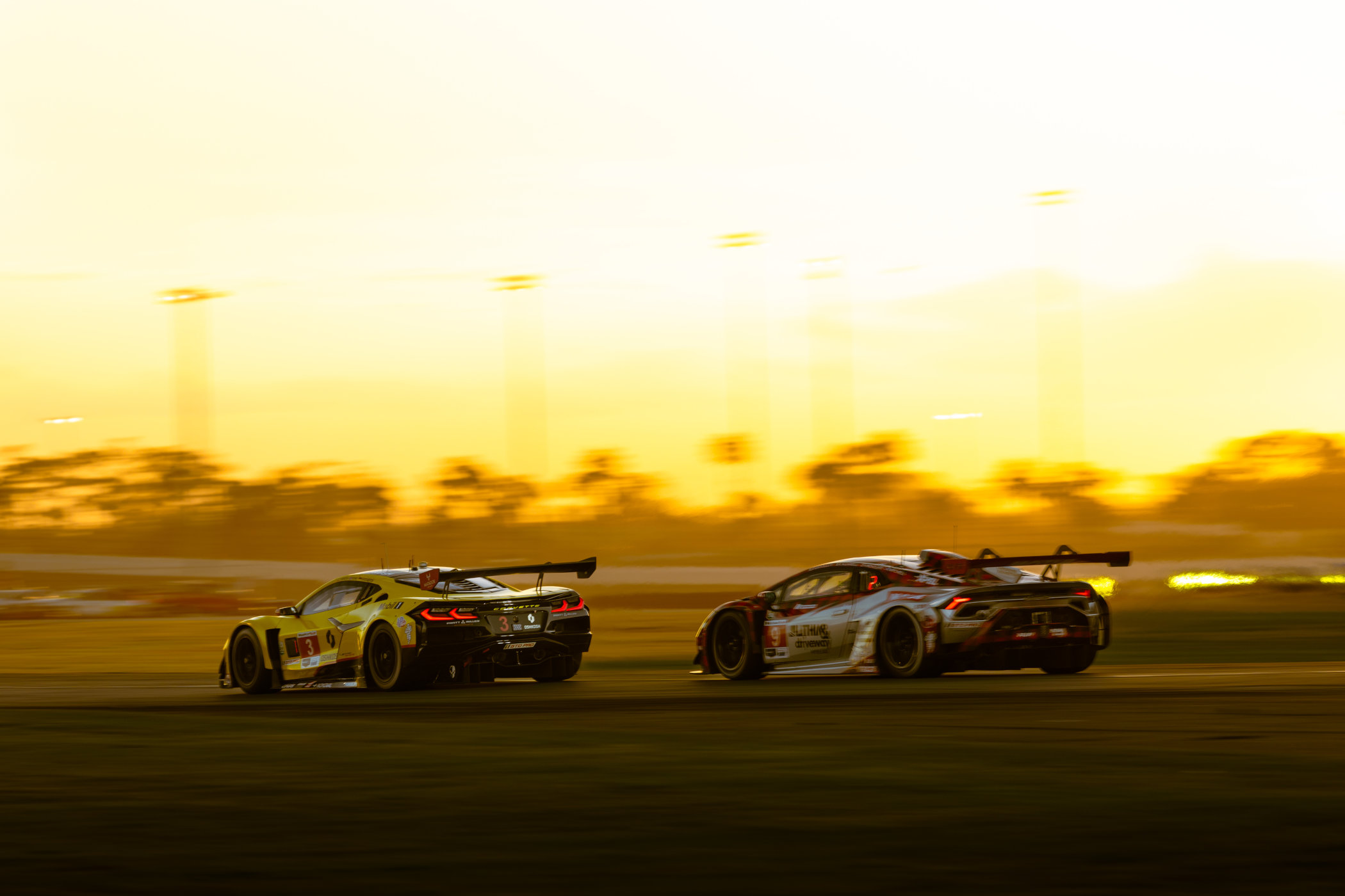During the early stages, there was a train of GTD Pro cars battling for the lead, with the top four cars separated by less than 1.5 seconds. As the battle went on, it was Nicky Catsburg in the #4 Corvette Racing by Pratt Miller Motorsports Corvette Z06 GT3.R that managed to pull away. In the GTD class, it was the #96 Turner Motorsport BMW M4 GT3 Evo at the front of the pack as the race progressed into the evening. Heading into nightfall, plenty of swaps for the lead followed, in part by incidents on track, or by stopping for a driver and tyre change, or needing refuelling. Nine hours in, the top five cars in the GTD Pro class were bunched up again, with just 5 seconds between first and fifth. As night progressed to morning, it was the #64 Ford Multimatic Motorsports Mustang GTD GT3 Evo in the lead of the GTD Pro class, and the #21 AF Corse Ferrari 296 GT3 Evo heading the GTD field.