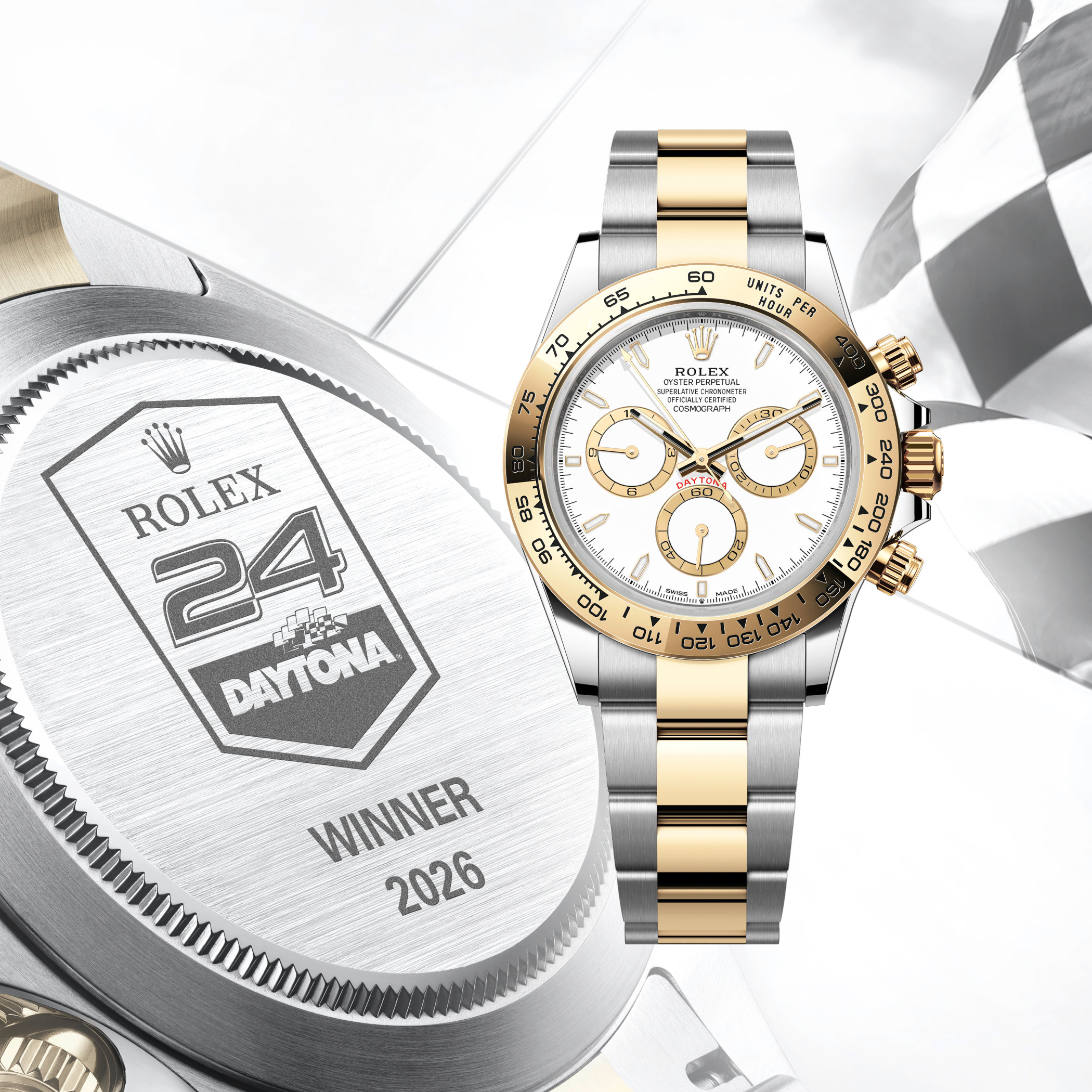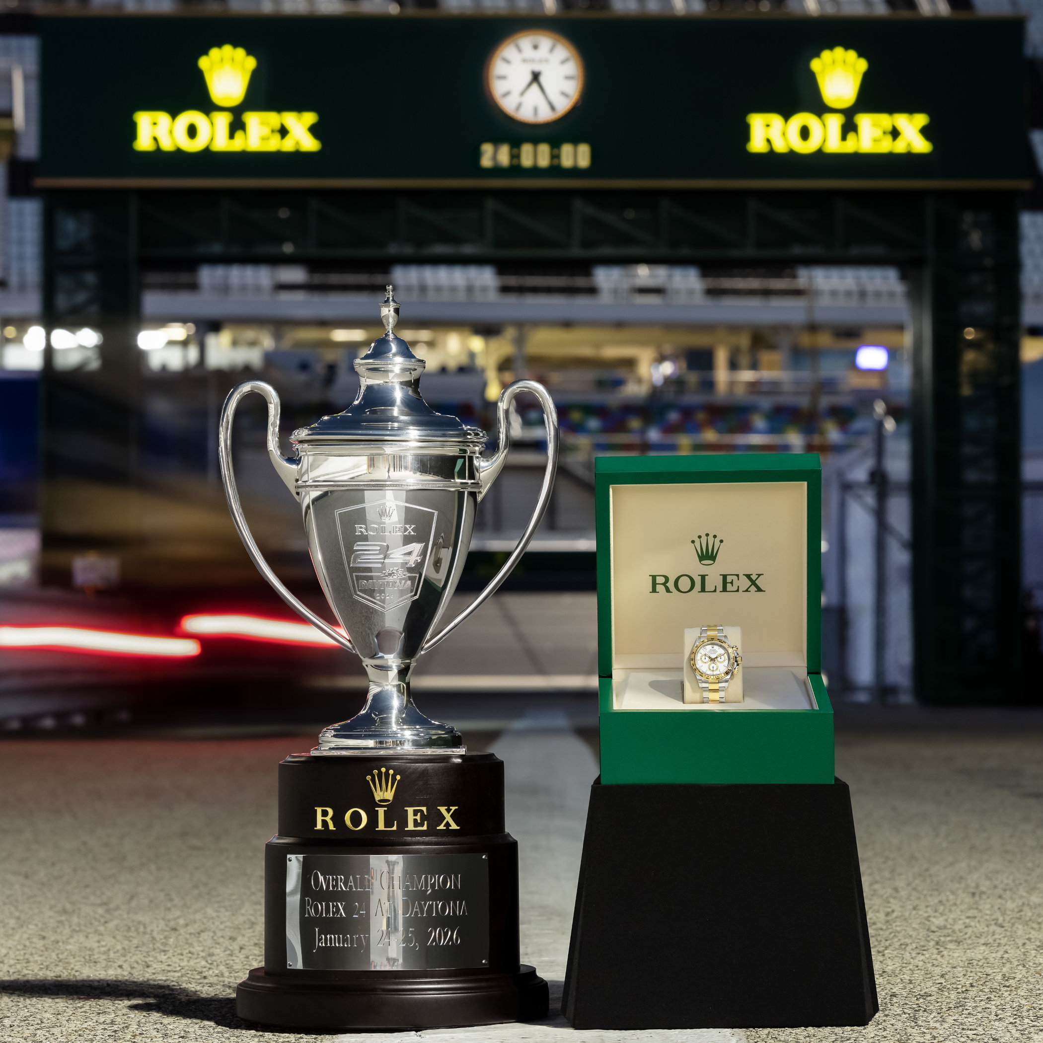 As every year, the winners in each class were not only presented with a trophy, but also a special edition Rolex Cosmograph Daytona. This year, it’s a two-tone steel and yellow gold edition with a white dial. The caseback is engraved with the event’s emblem, and the script “Winner 2026” below it, signifying the team’s victory in one of the biggest races on the calendar!