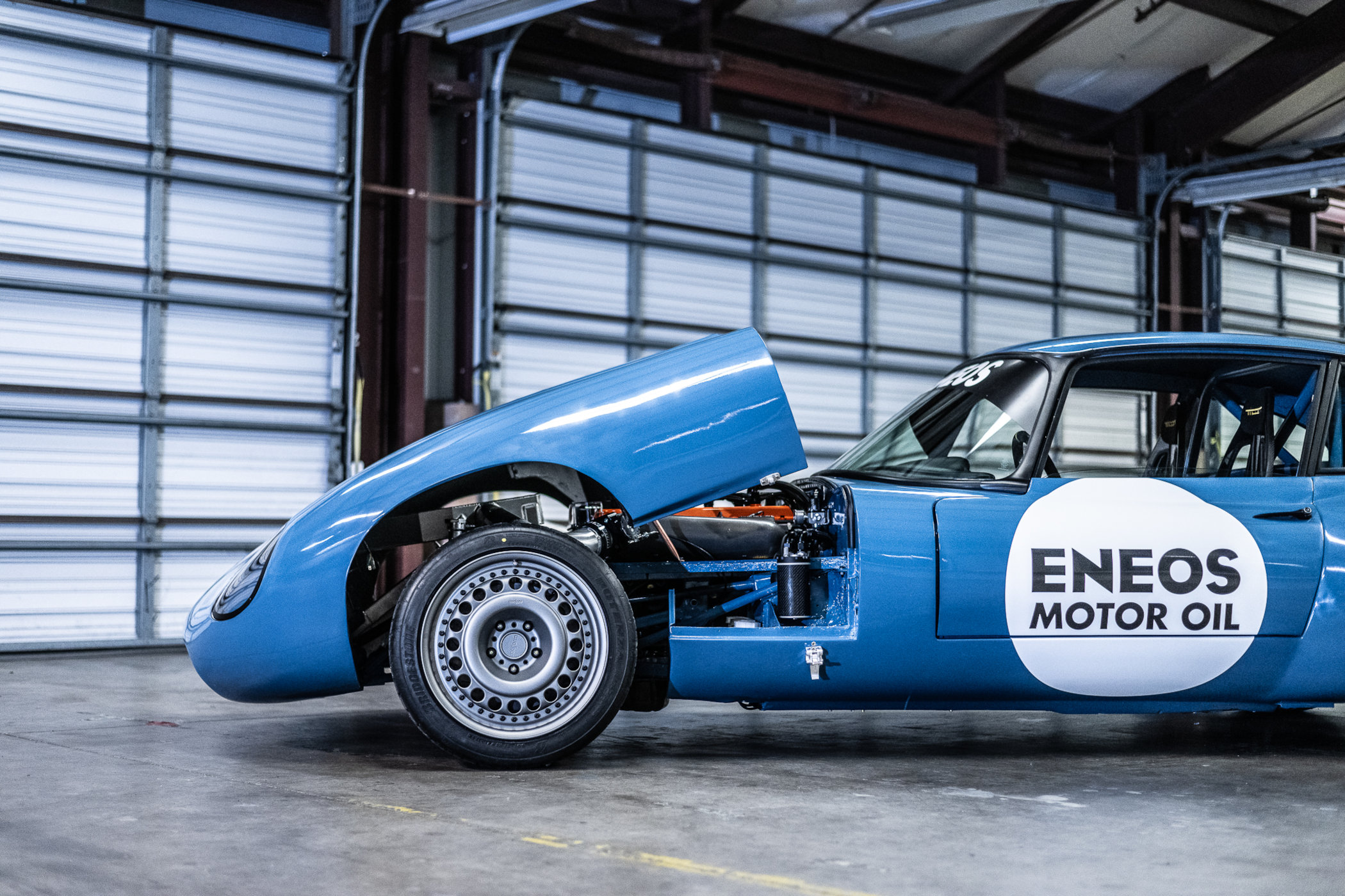 Eneos, the Japanese manufacturer of oils and lubricants has seriously gone to town on this E-Type Coupe. Pretty much the only thing that is still identifiable as an E-Type is the exterior. All the rest has been custom-made or sourced from various manufacturers. The chassis is made using BMW sub-frames, and the front brakes come from Chevrolet with the rear ones also coming from the Germans. The normally slender and curvaceous exterior was enhanced (for lack of a better word) with a 3D printed carbon fibre widebody kit. It sits on custom-built wheels that at least remind us of racing E-Types from a bygone era.