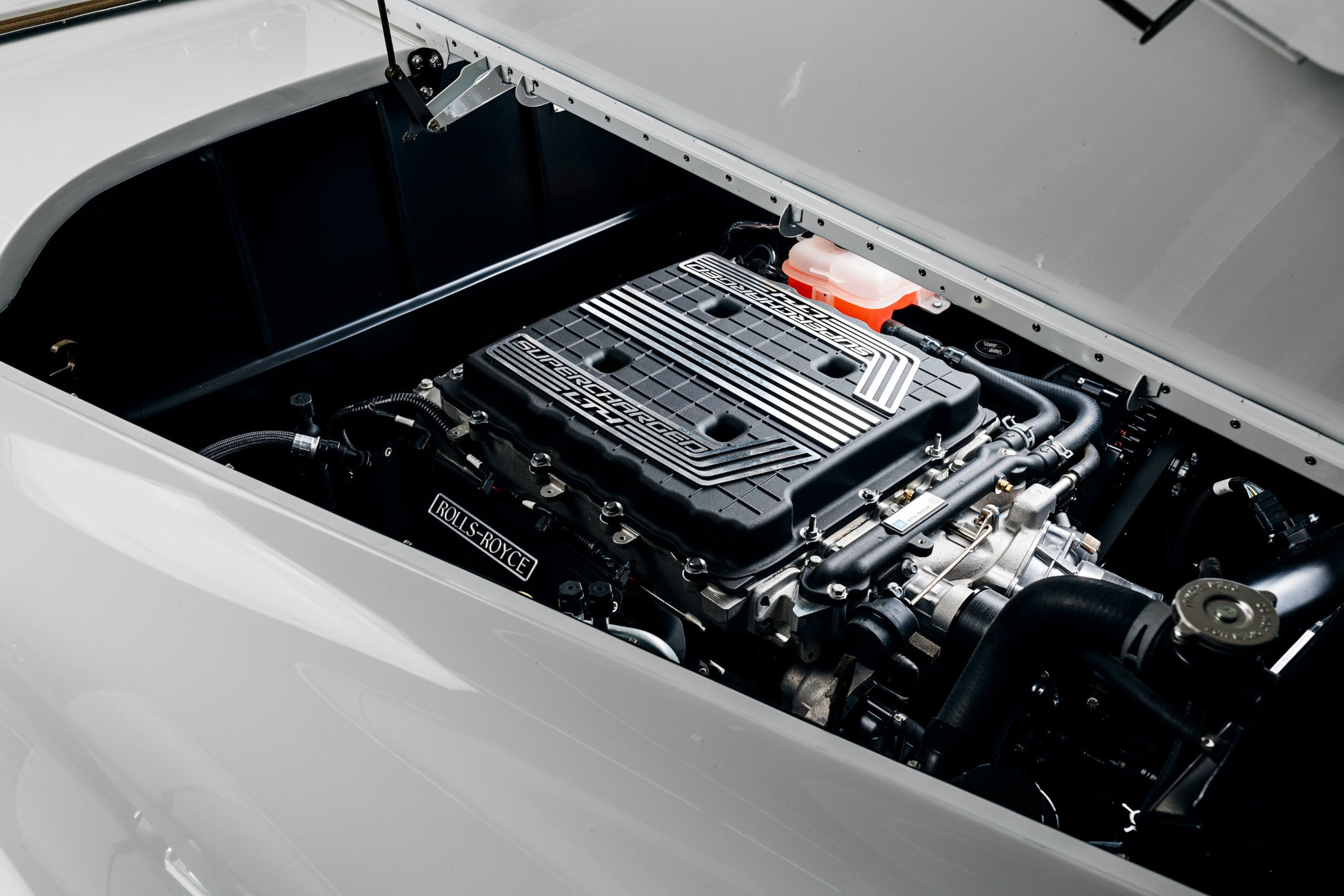 Just like with any other build, the Ringbrothers spare no expenses in detailing the car. The body was completely stripped down and restored where needed, before being painted in a stark white colour. It sits on a completely custom-built chassis and uses a ten-speed automatic transmission connected to a carbon fibre driveshaft. On the inside, the original style is retained but upgraded with more modern gauges, a ‘starlight’ headliner and a new front bench seat to increase interior space. It’s a pretty amazing creation, merging classical British motoring with American V8 power.
