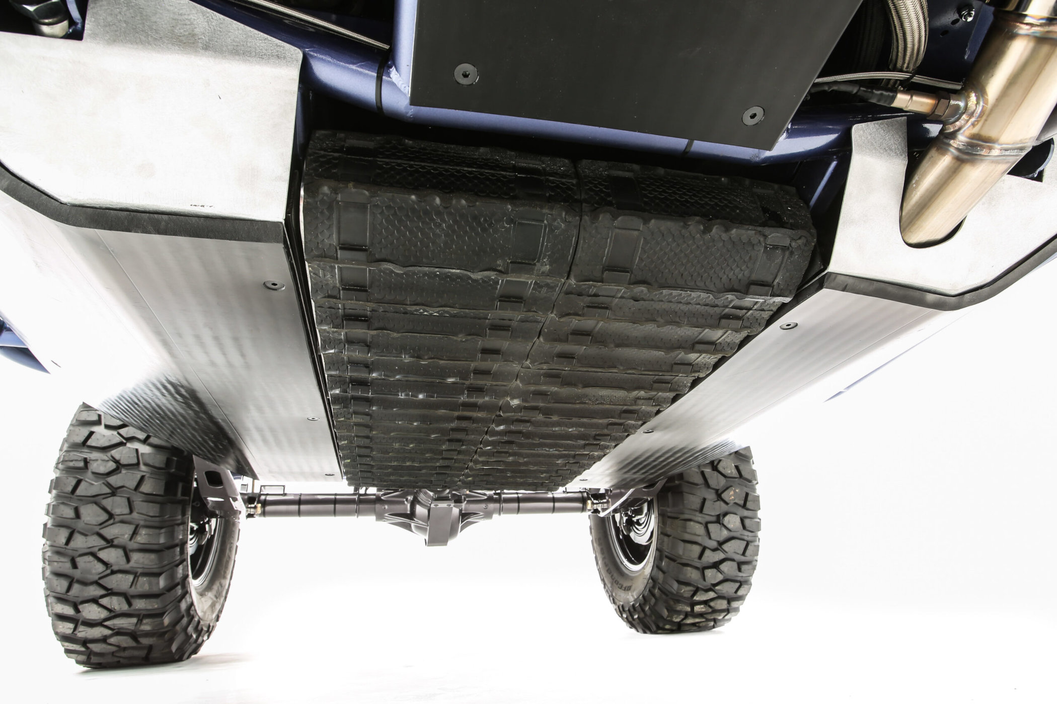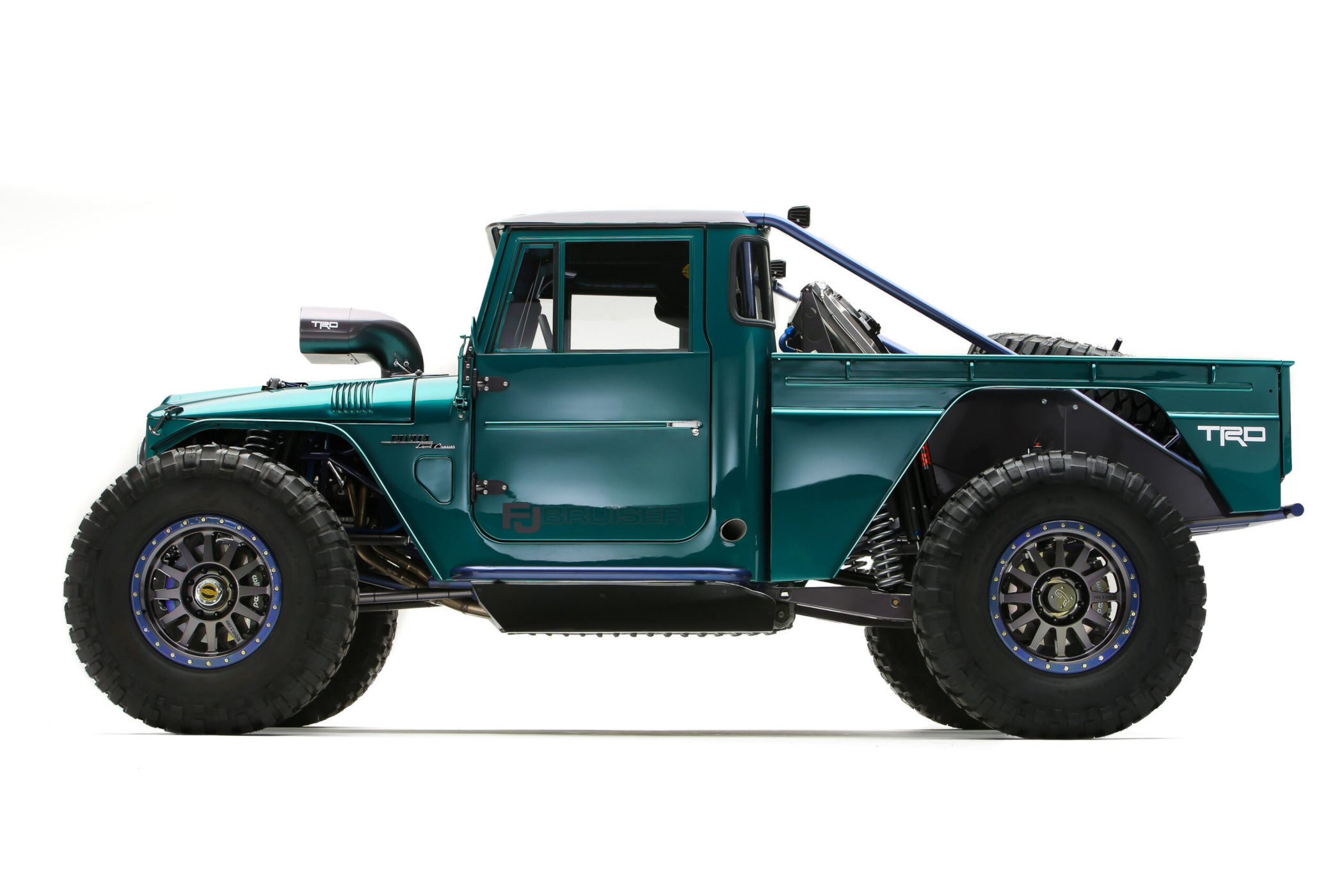 Styled to look like the iconic 1966 FJ45 Land Cruiser pick-up truck, not much is left of the old beast. Everything is new on the car, including the custom-built tubular chassis and roll cage. It sits on trailing-arm suspension with high-performance shocks and springs, a necessity if you want to go off-road fast. The beadlock wheels and stubby are ginormous, in an effort to provide some sort of traction and to get power to the ground, whichever surface that may be.