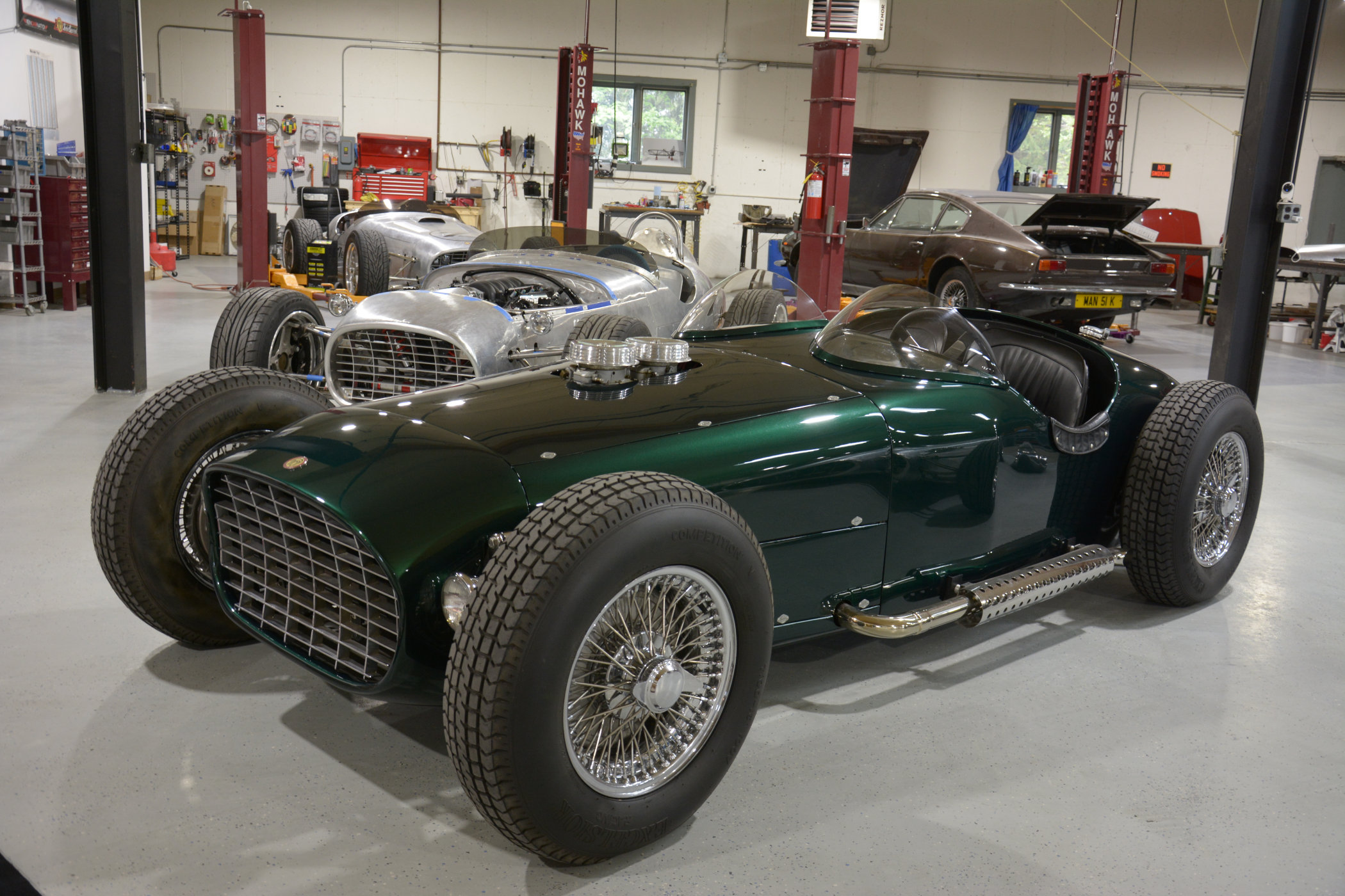 Most of this stuff is hidden by the stretch-formed aluminium body that closely matches the original car. The biggest change to the design is the rear section, which now looks like classic Indy Car racers from the same era. You can easily recognize the new design, which resembles cars like the Kurtis Kraft 500 that raced in Indy Car throughout most of the 1950s and 1960s. The double-bubble windshield is also exchanged for a more conventional low-rise windshield. This might not be the purest design if you compare it to the Troy Roadster, but in all honesty, the new windshield perfectly matches the look of the car. The nose section is also quite cool, which offers a glimpse of the in-board suspension system.