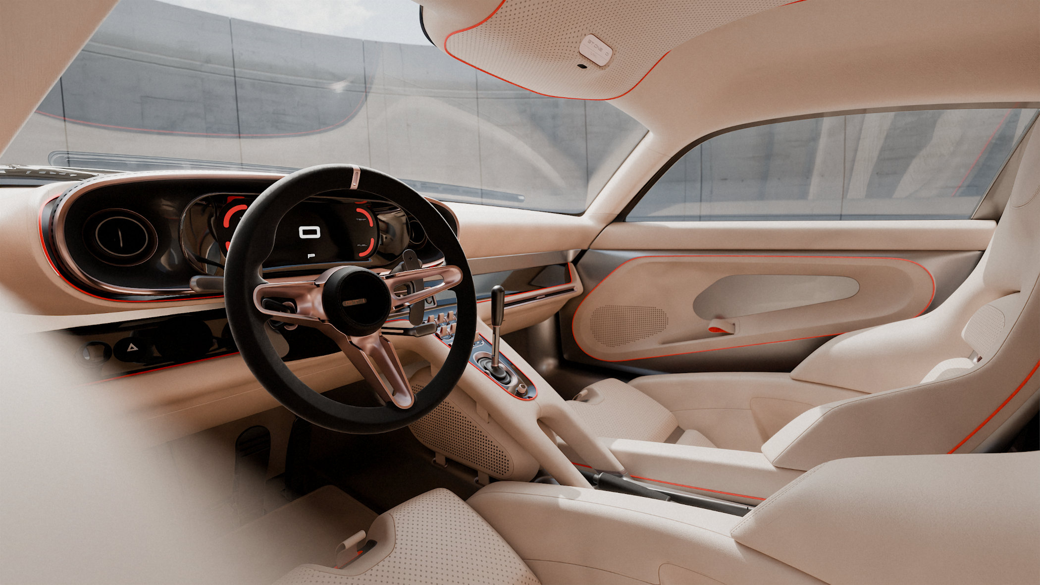 In true restomod fashion, it’s not just the exterior that has been restyled, but the interior as well. It looks nothing like the spartan interior of the 911 GT1 as raced at Le Mans, and also miles ahead of the 911 GT1 Strassenversion in terms of creature comfort. Not much is said about it, but you can see swaths of leather and finely machined switches and knobs in a soft sandy beige, with red pinstriping around the seats, door panels, roofline and dashboard. The three-spoke steering wheel looks like a reassuring thing to grip, with a pair of paddles behind it to work your way through the gears (or not, if you’ve gone for the manual).