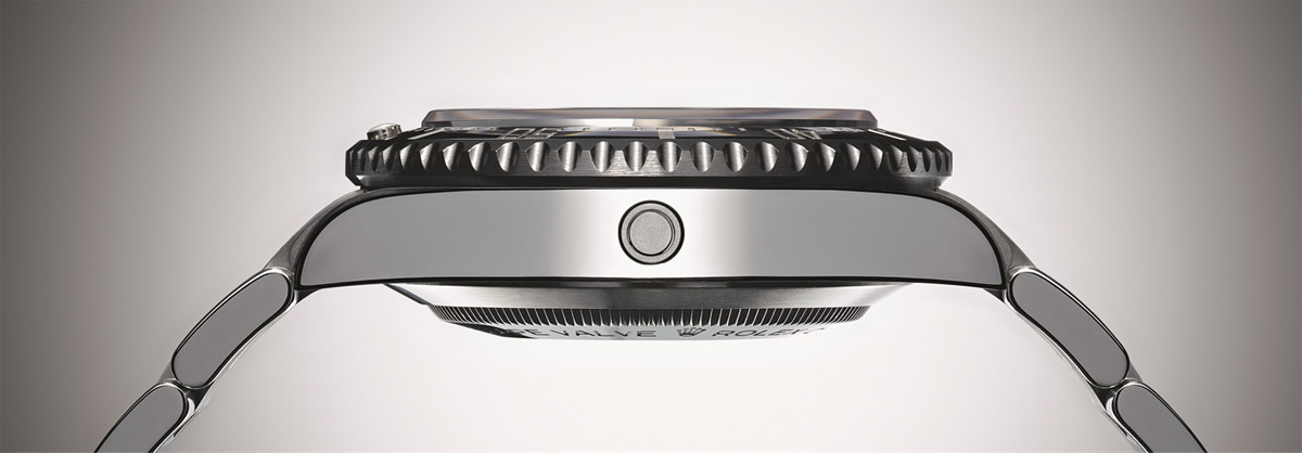 - Case: 904L stainless steel, 40 mm in diameter, helium escape valve, screw-down crown, unidirectional rotating bezel with Cerachrom bezel, guaranteed waterproof to 1,220 metres (4,000 feet)